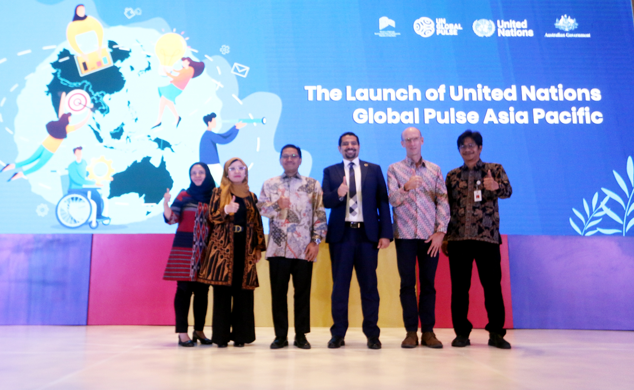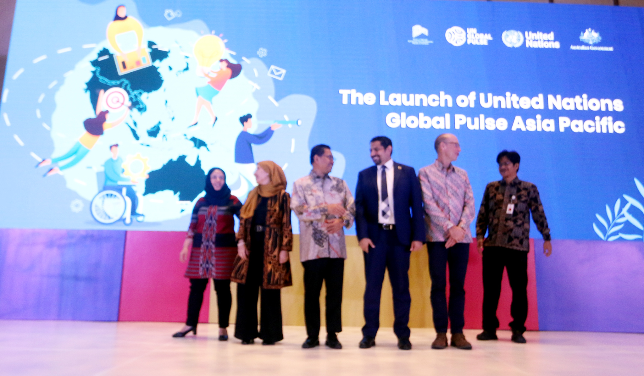Satu Dekade Pulse Lab Jakarta dan Peluncuran United Nation Global Pulse Asia Pacific, di Jakarta, Kamis (22 Juni 2023). Acara direncanakan akan berlangsung hingga 23 Juni 2023. Acara ini akan mempertemukan berbagai kelompok pemangku kepentingan, termasuk perwakilan dari lembaga pemerintah, perwakilan negara Asia-Pasifik, Badan PBB, organisasi donor, organisasi masyarakat sipil, akademisi, mitra pembangunan, staf dan alumni PLJ, pemuda dan masyarakat umum. Para pembicara dalam acara Peluncuran United Nation Global Pulse Asia Pacific tengah berbincang di atas panggung.