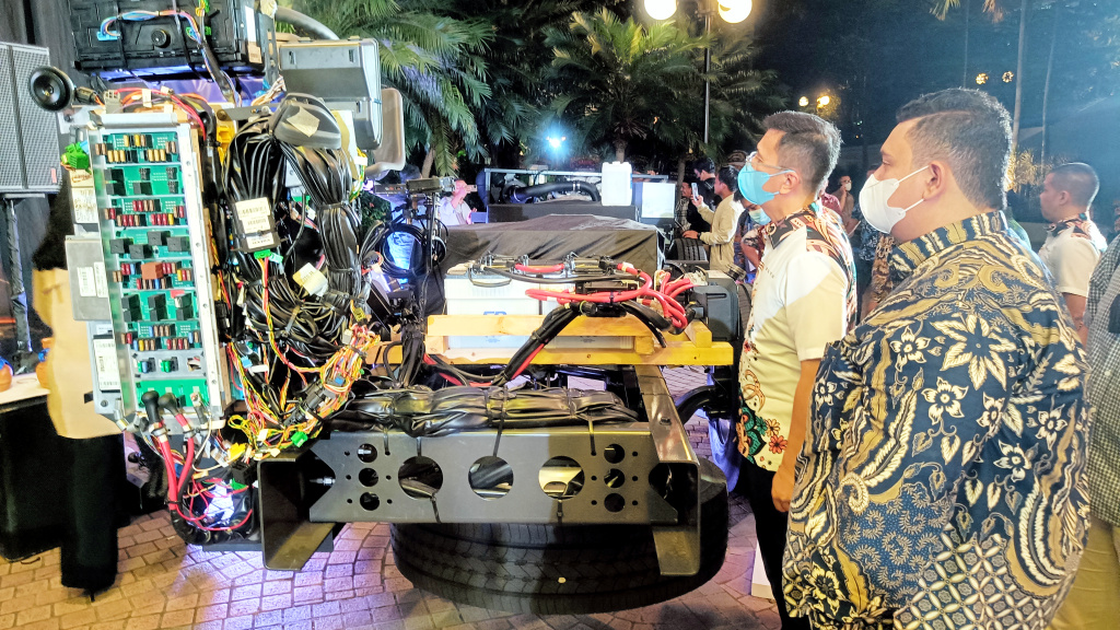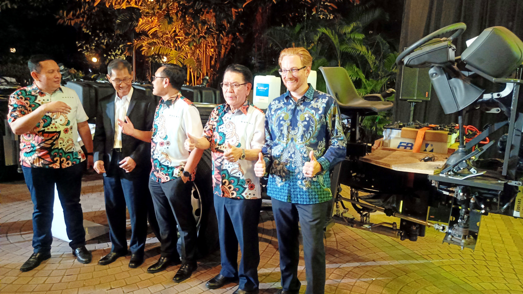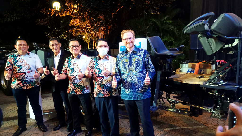Dari kiri, Chief Operating Officer PT Indotruck Utama, Eka Lovyan bersama Senior Manager Aftermarket Commercial Volvo Buses Asia Pasific Region, KN Chua, Presiden Direktur PT Indotruck Utama, Bambang Prijono, Director PT Indotruck Utama, Eric NG, dan Trade Commisioner Embassy of Sweden, Erik Odar saat peluncuran Volvo Bus Euro V di Jakarta, Senin (19/12/2022). Volvo Buses Indonesia bersama dengan PT Indotruck Utama yakni distributor resmi tunggal di Indonesia meluncurkan rangkaian produk lengkap Volvo Bus Euro V dan mengumumkan secara resmi penunjukan PT National Assembler sebagai pabrik perakitan Volvo Buses di Indonesia.