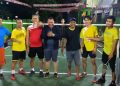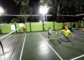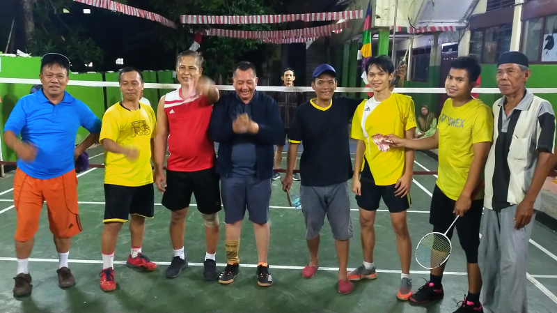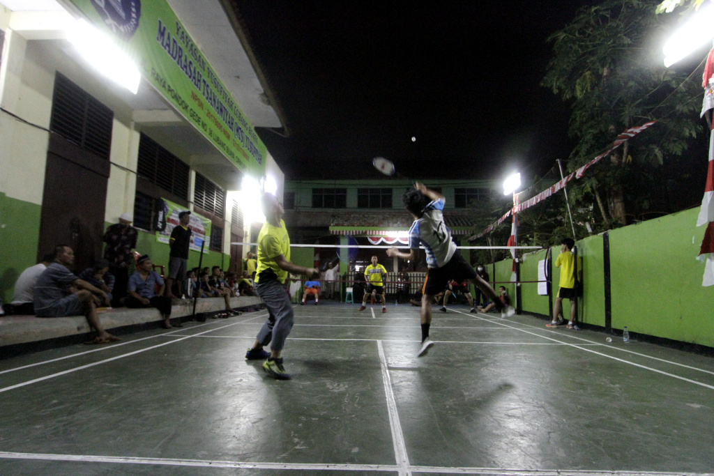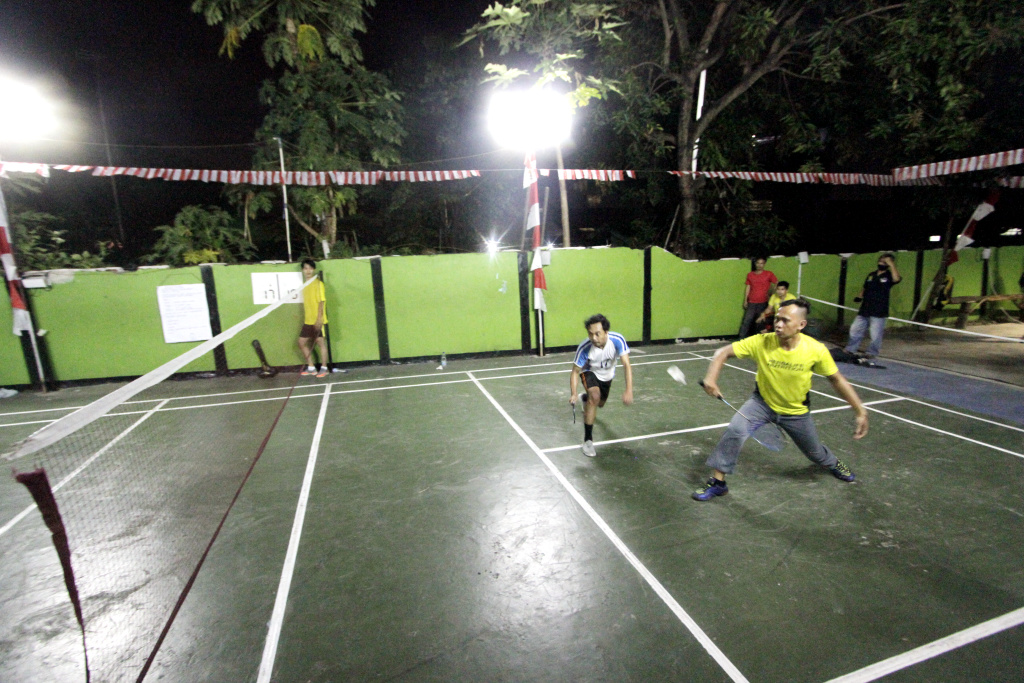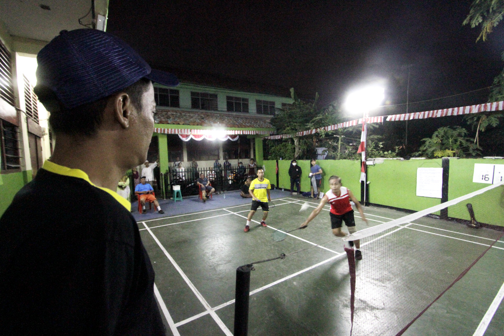 Para pemain badminton saat bertanding final pra 17 Agustusan di RT 10 Lubang Buaya Jakarta Timur, Sabtu (25/7). Warga sangat antusias mengadakan perlombaan badminton jelang hari kemerdekaan Indonesia yang jatuh pada tanggal 17 Agustus 2020 ke 75 Tahun Indonesia Merdeka.