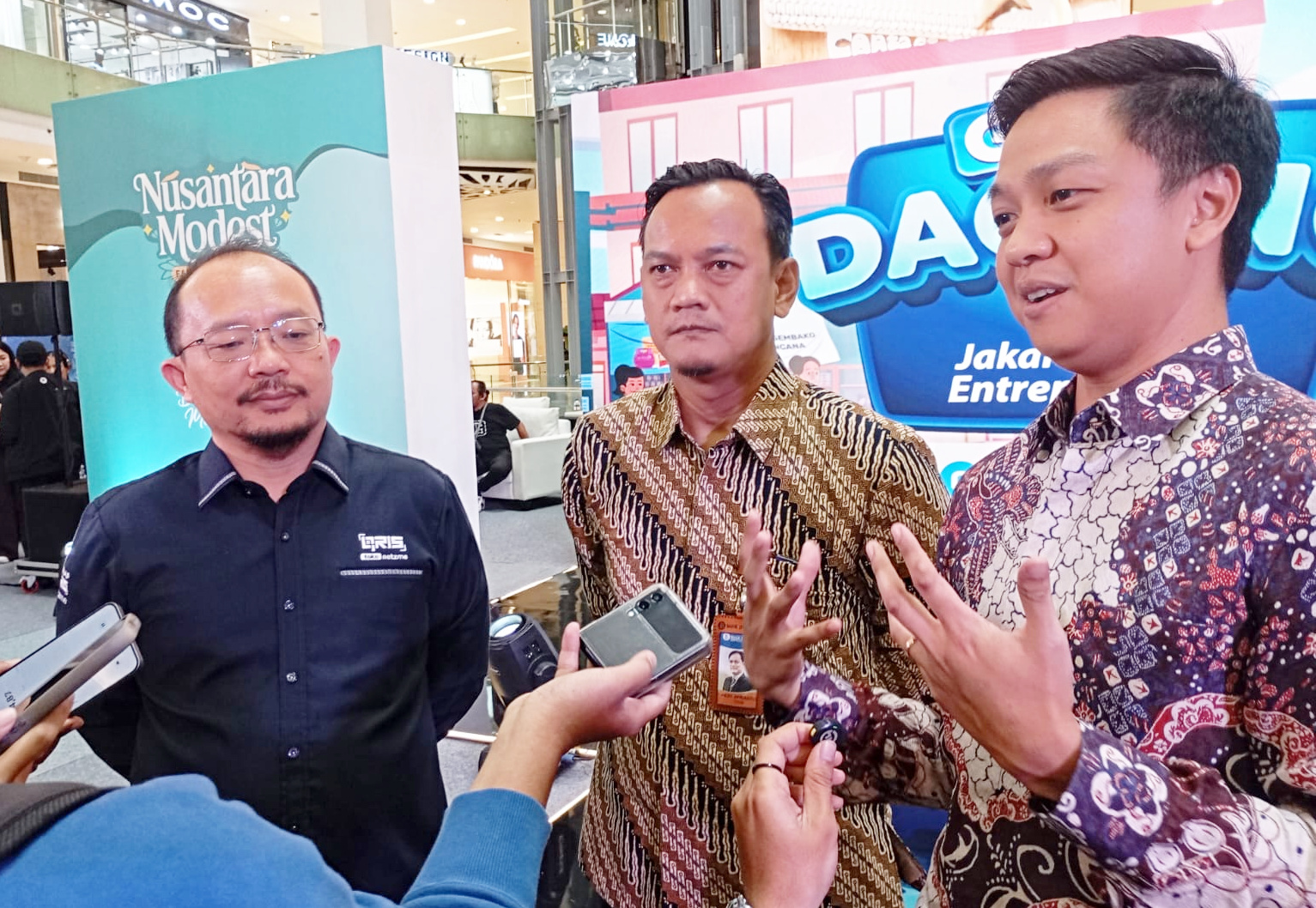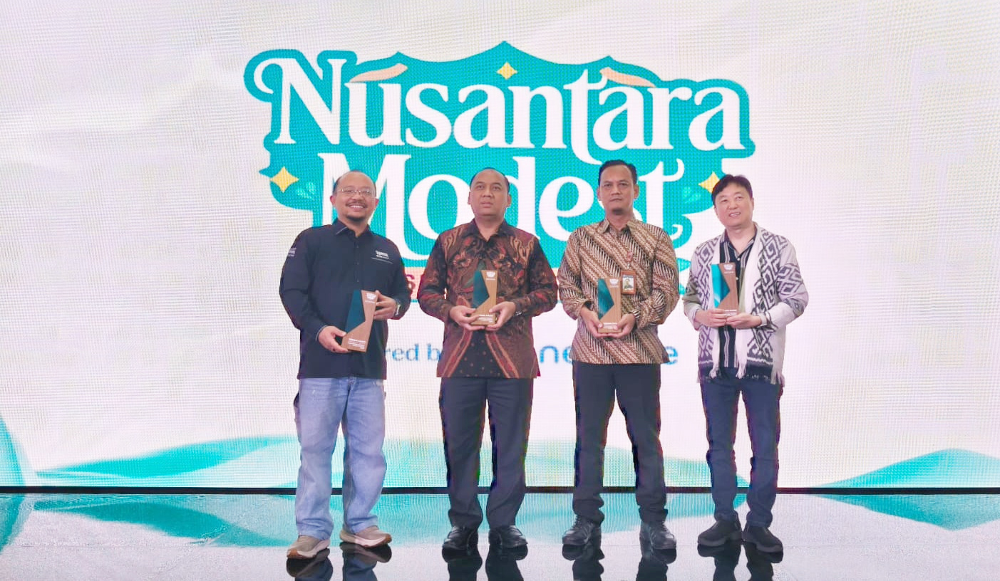 Sekretaris Daerah (Sekda) Provinsi DKI Jakarta Uus Kuswanto (kedua kanan), Kepala Divisi Implementasi dan Kebijakan SP, Kantor Perwakilan Bank Indonesia Provinsi DKI Jakarta Hery Afrianto (kedua kiri), CEO PT Netzme Kreasi Indonesia (Netzme) Vicky Ganda Saputra (kiri) dan Executive Producer Paragon Pictures Andi Boediman berfoto bersama usai pembukaan event Nusantara Modest Fashion Festival (NumoFest) di Main Atrium, Gandaria City, DKI Jakarta, Jumat, 23 Januari 2026.