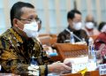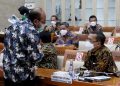 Direktur Utama PT Bank Tabungan Negara (Persero) Tbk (BTN) Haru Koesmahargyo berbincang santai dengan anggota Komisi VI DPR RI sebelum Rapat Dengar Pendapat (RDP) Komisi VI DPR RI bersama Bank Himbara di Jakarta, Senin (14/6). Bank BTN telah mendapatkan kepercayaan pemerintah untuk menempatkan kembali dana Pemulihan Ekonomi Nasional (PEN) ke perseroan sebesar Rp10 triliun yang sudah memasuki periode keempat dan optimistis akan mampu me-leverage hingga Rp30 triliun. Perseroan berperan sebagai kontributor utama dalam menyalurkan PEN untuk menjalankan Program Perumahan Nasional di tengah pandemi Covid-19 agar tetap berjalan.