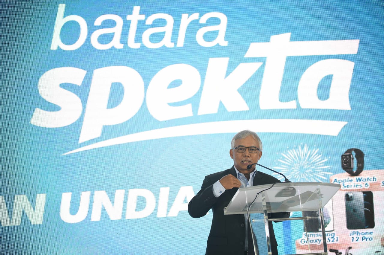 Head of Retail Funding & Services Division Bank BTN Ferry Sipahutar saat melakukan penarikan Undian Tahap I Batara Spekta di Jakarta, Rabu (1/12/2021). Dalam Undian Tahap I Batara Spekta, Bank BTN memberikan hadiah kepada para penabung yang memenangkan undian di antaranya Sepeda Motor Yamaha NMAX, Sepeda Brompton dan MacBook Pro. Untuk Undian Tahap II Batara Spekta yang akan digelar pada Februari 2022, Bank BTN akan memberikan hadiah berupa rumah dan mobil mewah.