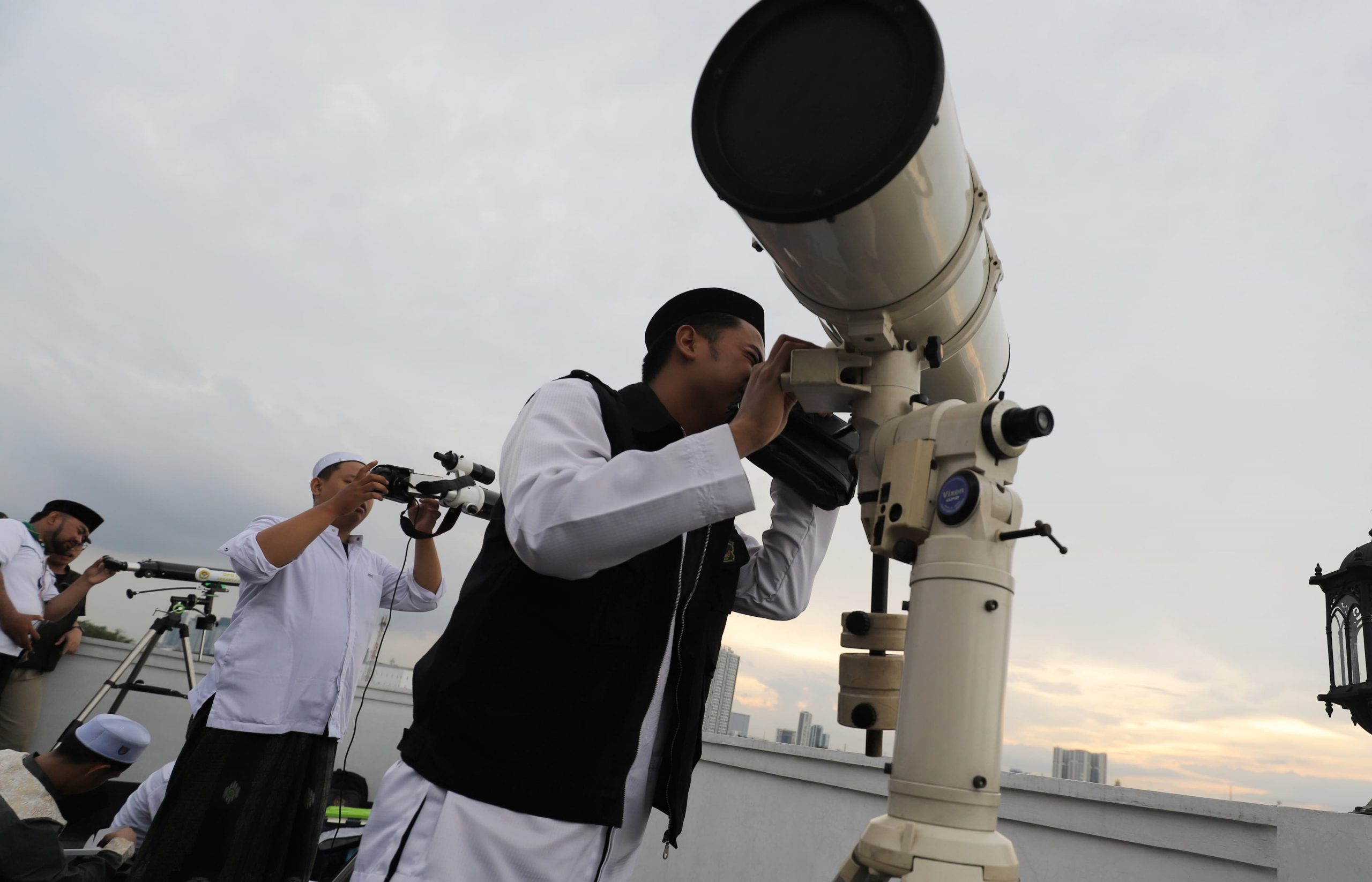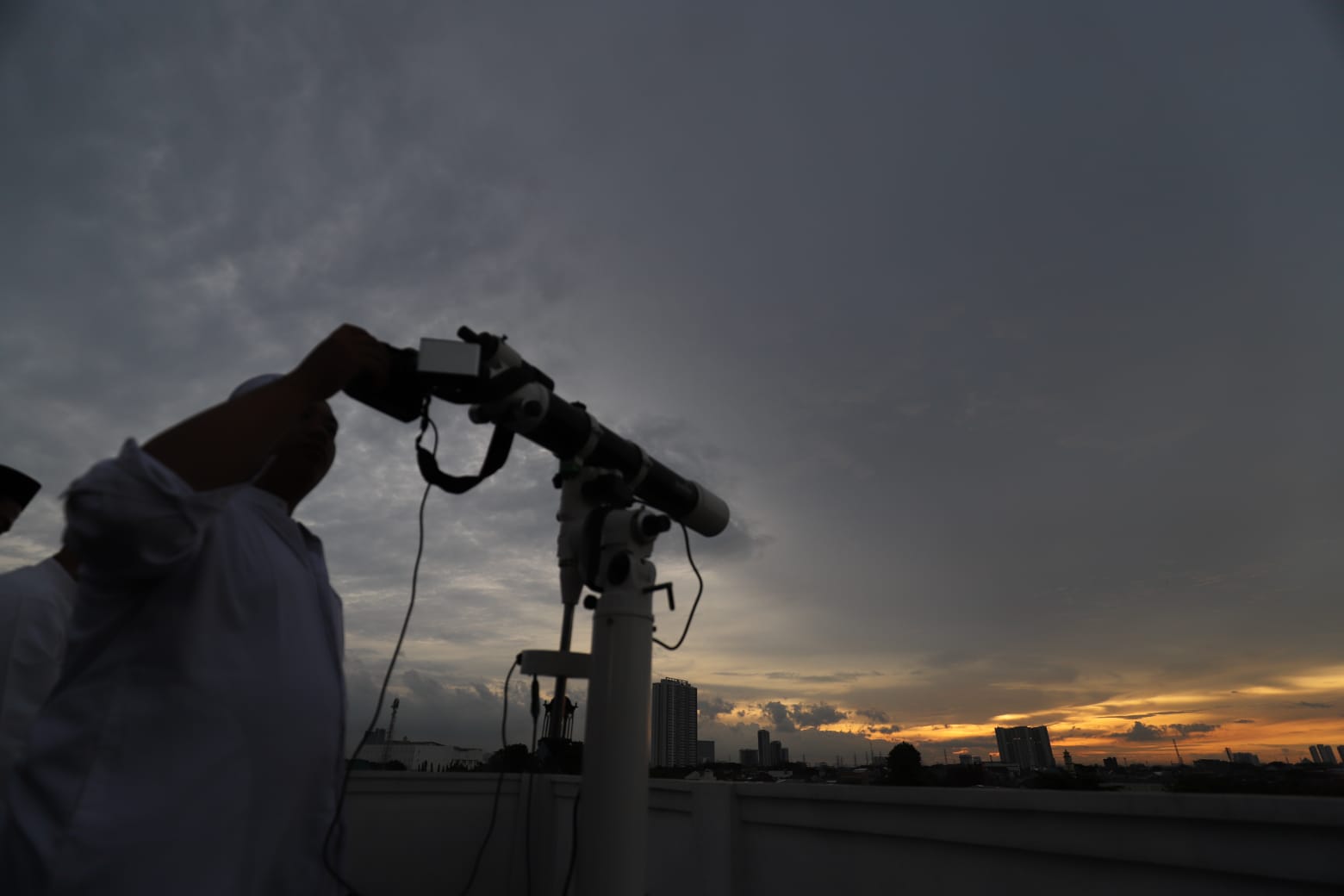 Petugas melakukan pemantauan hilal atau rukyatul hilal di Masjid Al-Musyari’in Basmol, Jakarta, Selasa (17/2/2026). Kementerian Agama melakukan pemantauan hilal atau rukyatul hilal di 125 titik lokasi di seluruh Indonesia guna menentukan 1 Ramadhan 1447 H.