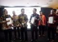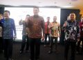 Direktur Utama PT Jamkrindo Randi Anto(kiri) bersama dengan Direktur Utama Askrindo Dedi Sunadi berfoto bersama usai menyaksikan Penandatanganan perjanjian kerja sama pembiayaan modal kerja syariah antara