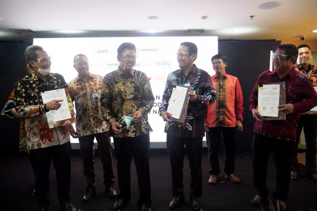 anak usaha PT Jamkrindo yakni PT Jamkrindo Syariah dan PT Askrindo Syariah dengan delapan bank Syariah yakni PT Bank BRISyariah Tbk, PT Bank Syariah Mandiri, PT Bank BNI Syariah, PT Bank BTN Unit Usaha Syariah, PT Bank Jatim Tbk Unit Usaha Syariah, PT Bank Jateng Unit Usaha Syariah, PT Bank BTPN Syariah, dan PT Bank Maybank Indonesia Unit Usaha Syariah. Kerja sama ini merupakan