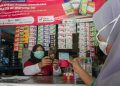 Juragan Warung Mitra Bukalapak, Tini memotret Kartu Tanda Penduduk (KTP) dan kupon paket sembako penerima paket sembako Mitra Bukalapak di Karanganyar, Jawa Tengah, Selasa (28/7). Warga penerima paket sembako diwajibkan untuk menunjukkan KTP dan kupon sebagai salah satu mekanisme dalam pembagian 5000 paket sembako melalui 50 titik Warung Mitra Bukalapak di Wilayah Solo Raya. Distribusi kupon juga dilengkapi dengan protokol kesehatan, yang dilaksanakan oleh Yayasan Pundi Amal Peduli Kasih (YPP) kepada masyarakat sekitar yang membutuhkan sebagai salah satu partner penyaluran bantuan sosial Bukalapak.