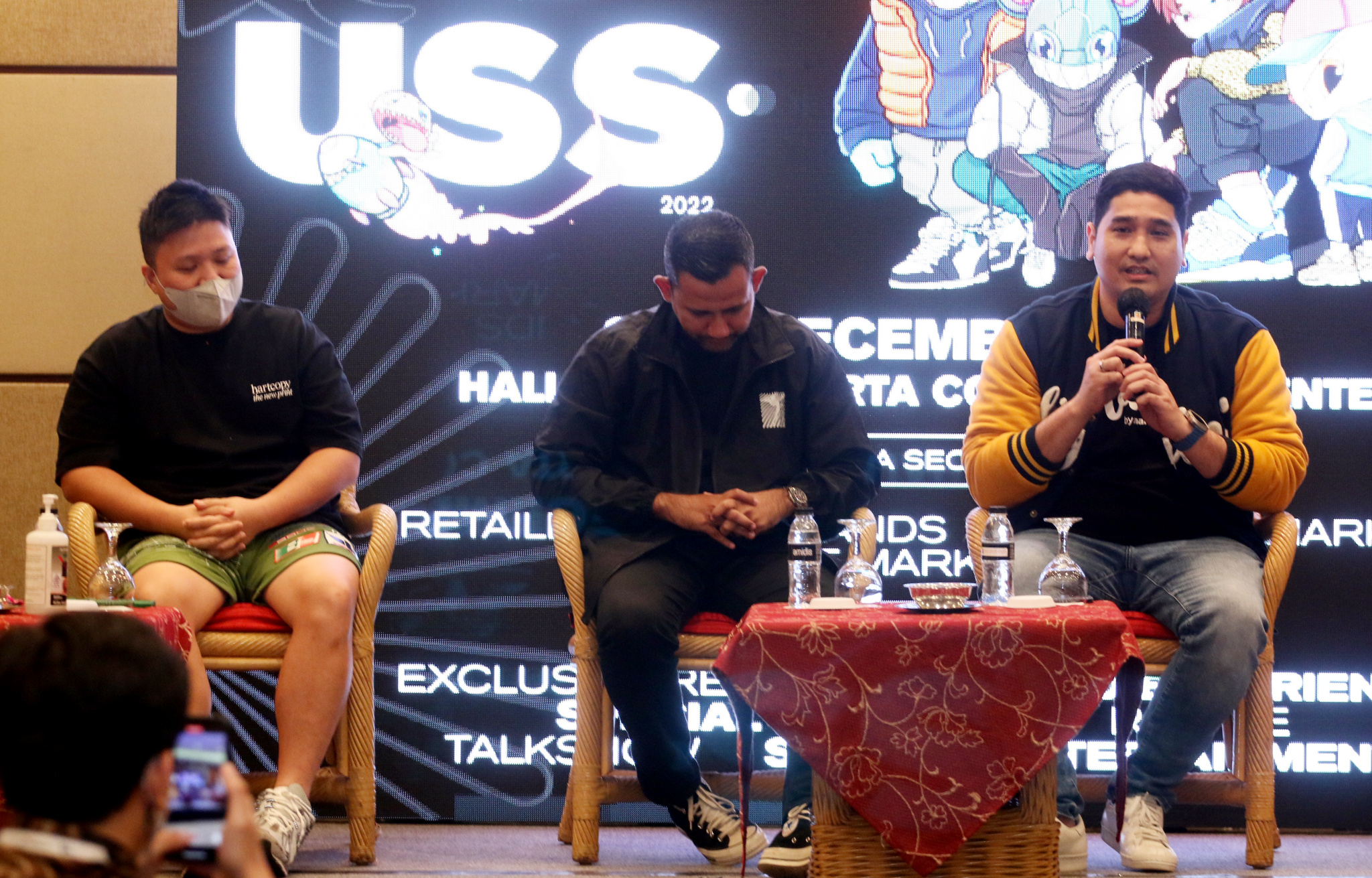 (kika) CMO USS Networks Jeffry Jouw, CEO USS Networks Sayed Muhammad, dan VP Corporate Communications Bank Mandiri Ricky Andriano saat menjelaskan tentang pelaksanaan event Livin’ by Mandiri USS 2022 di Jakarta, Senin (5/12). Digelar pada 9-11 Desember 2022 di Hall A dan B Jakarta Convention Center, event Fashion & Lifestyle tahunan ini akan kembali merilis produk eksklusif, kolaborasi antar brand, hiburan serta berbagai promo spesial termasuk diskon hingga 25% sebesar maksimal Rp250 ribu dengan livin’ poin dan diskon 30% harga tiket masuk dengan Livin’ by Mandiri atau Mandiri kartu kredit dan kartu debit. Keikutsertaan Bank Mandiri dalam event ini merupakan bukti keinginan perseroan menjadi urban locomotive bagi pengembangan ekonomi masyarakat urban di kota-kota besar.