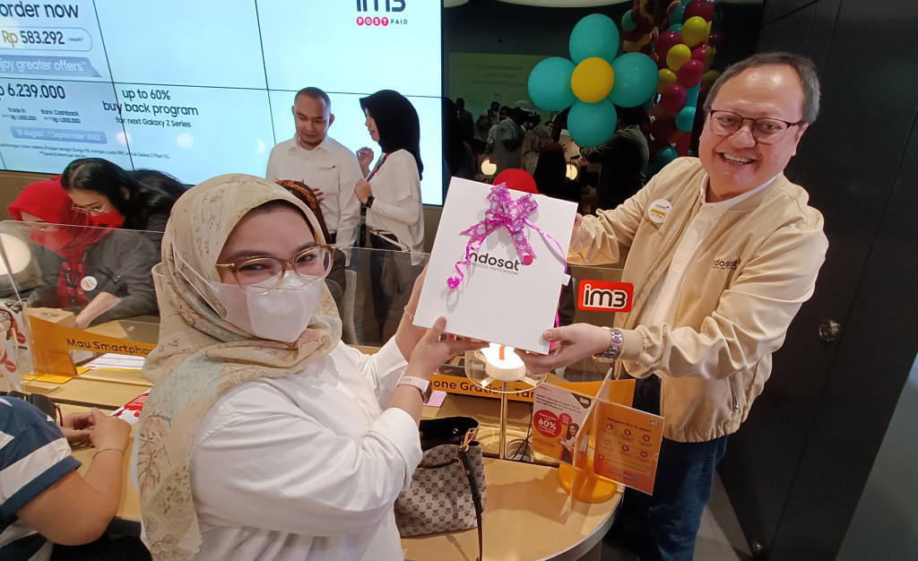 Dalam rangka memperingati Hari Pelanggan Nasional (Harpelnas) jajaran Manajemen Indosat Ooredoo Hutchison (IOH) turun labgsung melayani pelanggan di beberapa pusat layanan pelanggan di Jakarta, Semarang, Tangerang, dan Bekasi sejak 30 Agustus hingga 7 September 2022. Dengan mengusung tema “Kami Ada Untuk Anda”, mereka hadir memberikan pengalaman yang mengesankan kepada para pelanggan di Gerai IM3, Contact Center IM3, 3 Store dan 3 Care. Di Jakarta, Chief Commercial Officer Indosat Ooredoo Hutchison Ritesh Singh (kiri) dan Director & Chief Strategy & Execution Officer IOH Armand Hermawan (dua dari kiri), memberikan apresiasi kepada pelanggan di Gerai IM3 Kota Kasablanka, Jakarta (4/9). Di Tangerang, Chief Internal Audit Officer IOH Mohammed Afzal Lodhi (kiri), Director & Chief Finance Officer IOH Nicky Lee (dua dari kiri), Chief Business Officer IOH Bayu Hanantasena (tiga kiri) berbincang kepada pelanggan di Tri Store Tangerang City, Tangerang (4/9). IOH menyediakan sejumlah hadiah khusus “Box of Happiness”, voucher pulsa, paket data, voucher belanja, hingga potongan tagihan kepada pelanggan yang berinteraksi di berbagai saluran pelanggan IM3 dan Tri. Selain itu, IM3 menyiapkan paket khusus bagi pelanggan melalui Paket Freedom Internet Sensasi 100GB. Sementara pelanggan Tri bisa memperoleh hadiah dengan memutar Wheel of Happiness dengan melakukan transaksi minimal Rp50 ribu di 3DigiBox.