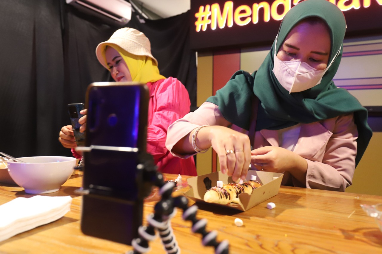 Sejumlah Konten Kreator menghadiri acara Helophoria di M Bloc Space, Jakarta, Sabtu (7/1/2023). Intel Sebagai Brand Partner yang mendukung acara HELOPHORIA yang melibatkan ratusan konten kreator itu untuk memberikan edukasi tentang membuat konten yang baik dan benar. Para Konten Kreator diberikan tempat berkreasi dengan peralatan yang ada seperti makanan, olahraga hingga pura-pura menjadi artis, yang hasilnya nanti diunggah di platform media sosial masing-masing.