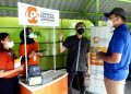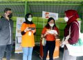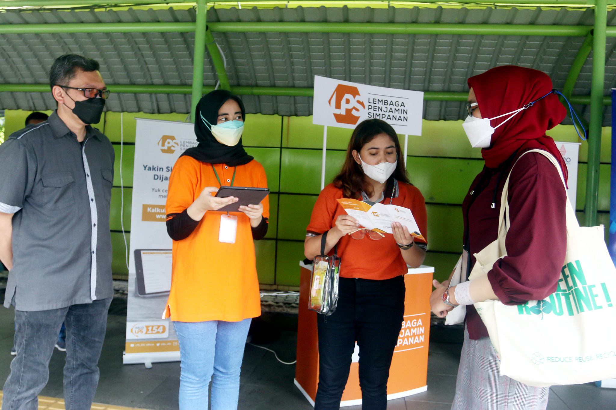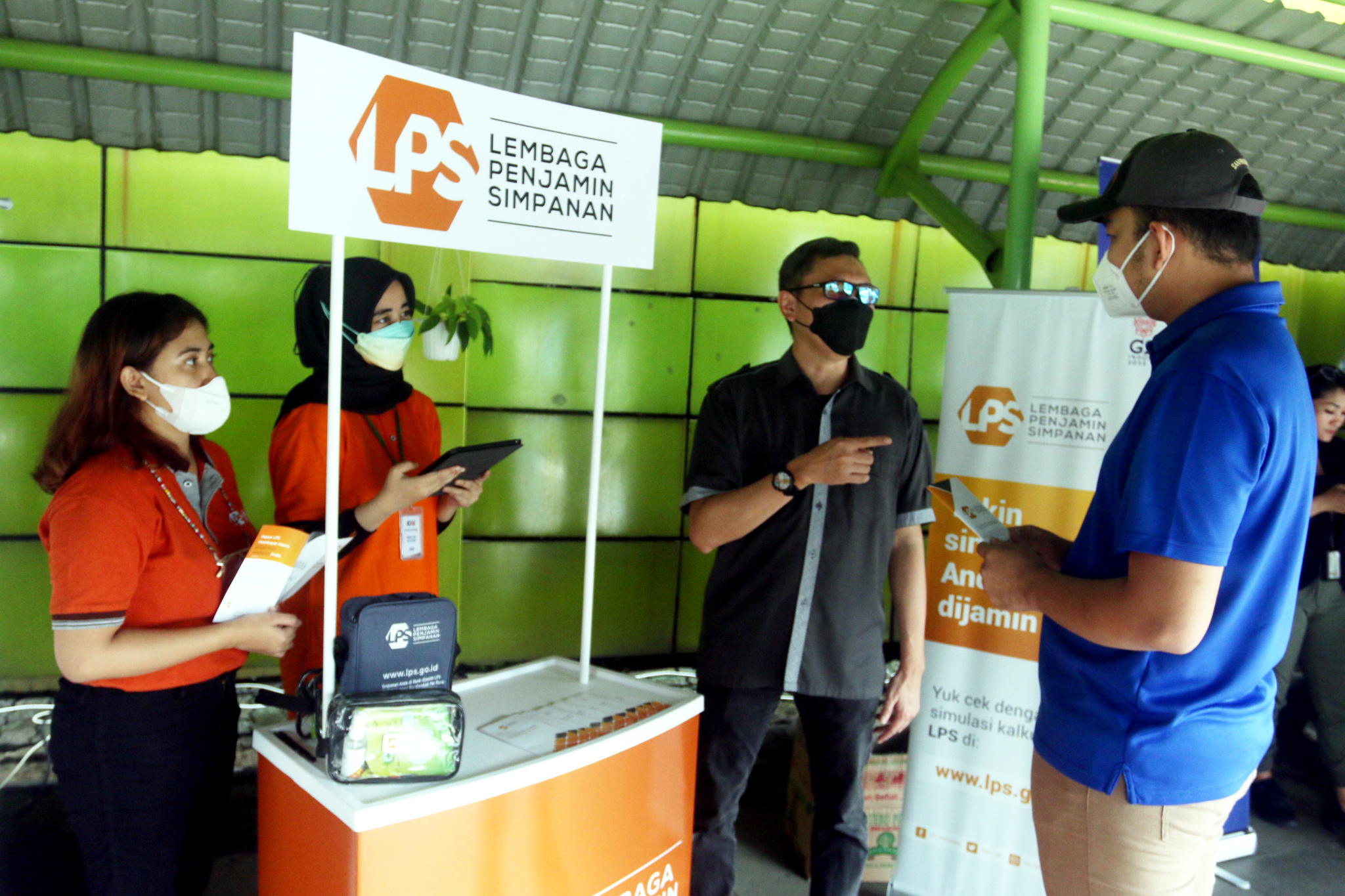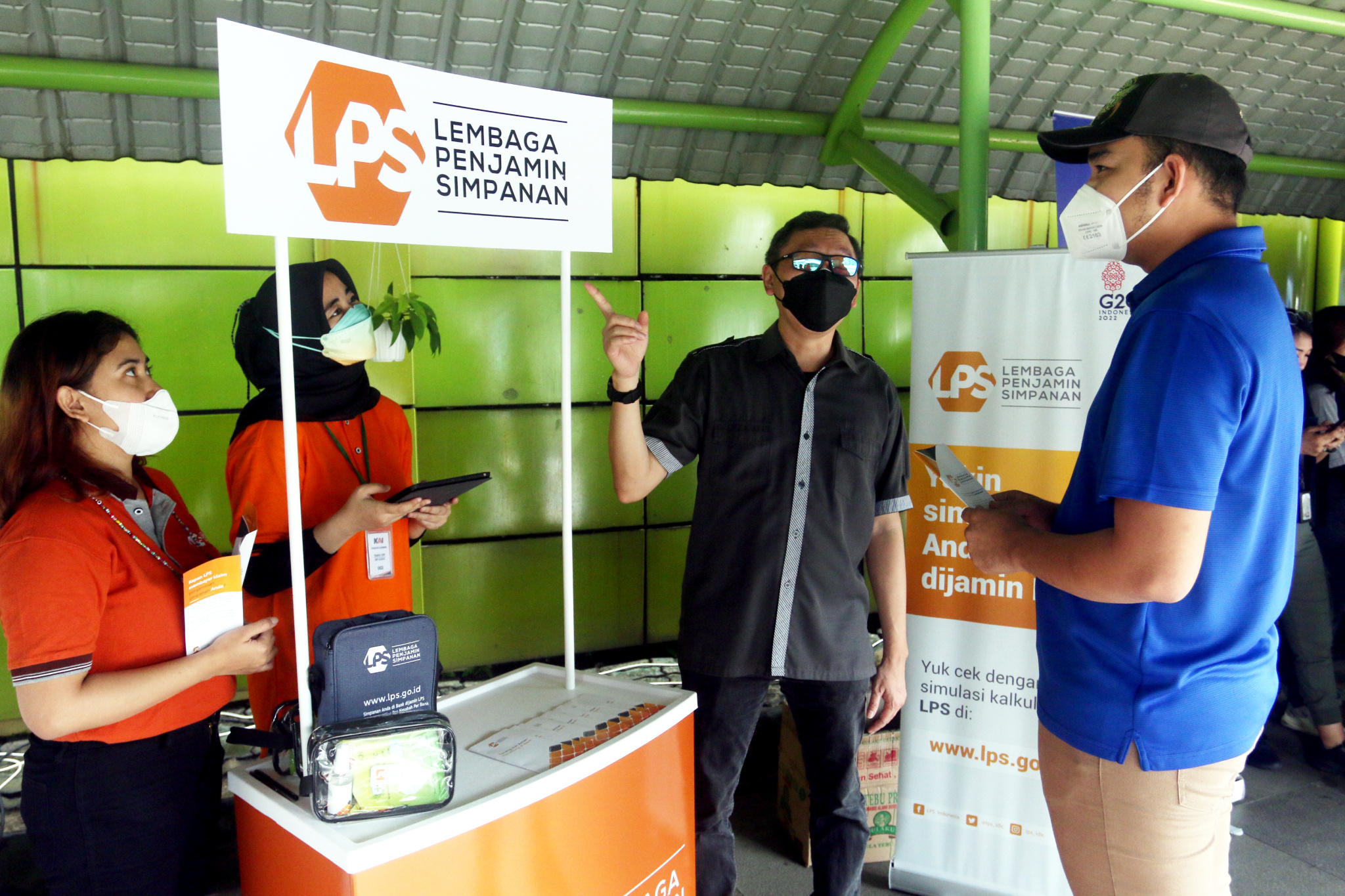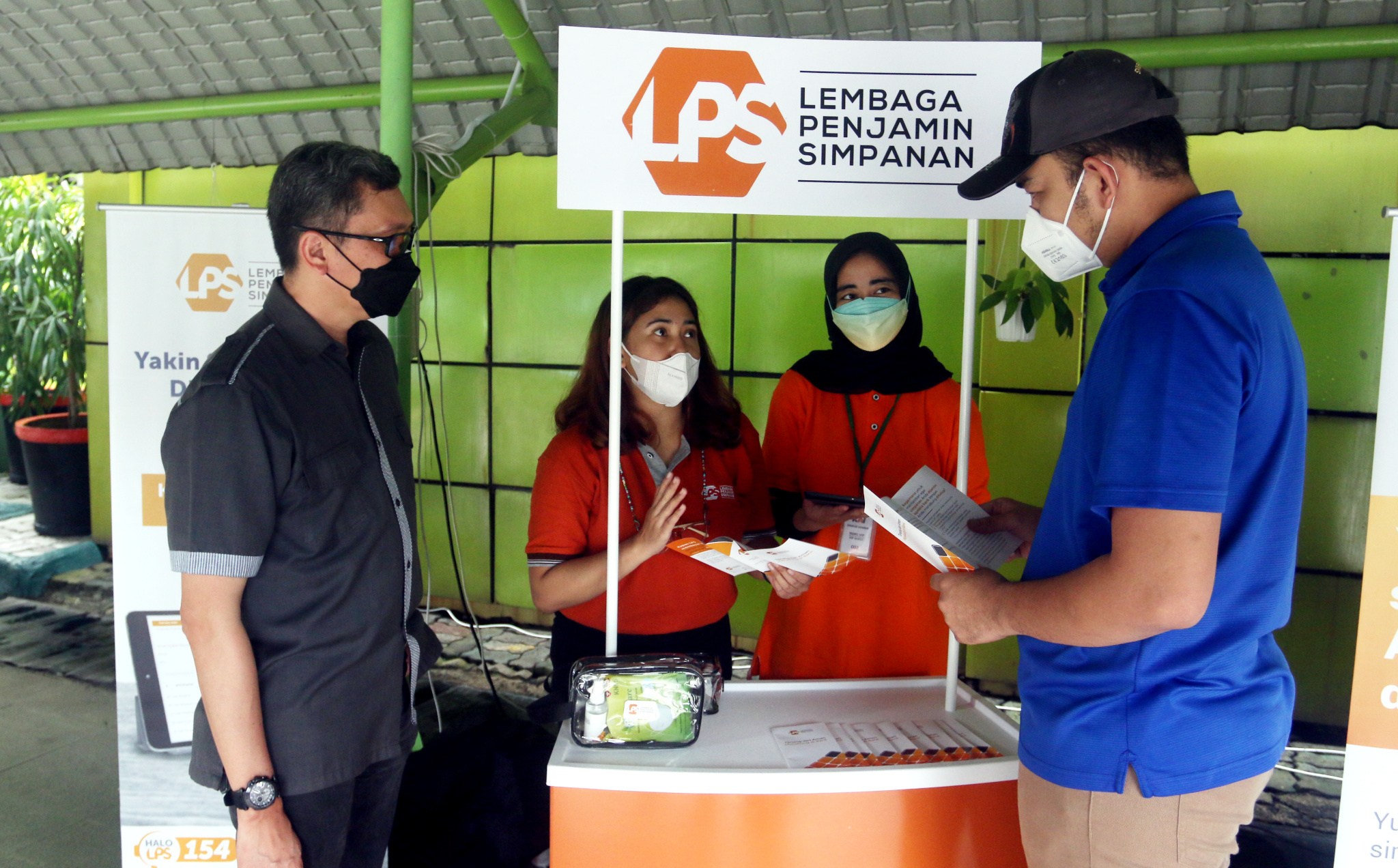 Sekretaris Lembaga Penjamin Simpanan (LPS), Dimas Yuliharto (kiri) saat menyapa seorang pemudik di Stasiun Gambir Jakarta, Sabtu (30/4/2022). Menyambut arus mudik lebaran, LPS menyelenggarakan serangkaian program Mudik Lebaran dan mendirikan Pos Mudik di berbagai titik keberangkatan di DKI Jakarta, yaitu di Terminal Kampung Rambutan, Terminal Pulo Gebang, Stasiun Pasar Senen dan Stasiun Gambir, serta di beberapa area peristirahatan pada jalan tol di Pulau Jawa.
