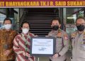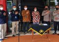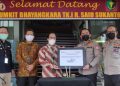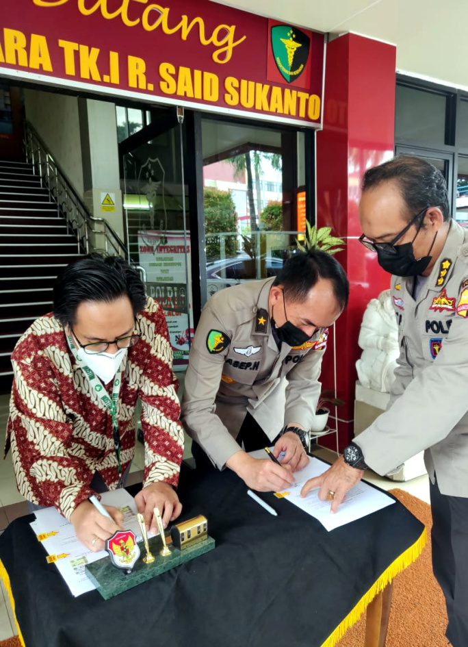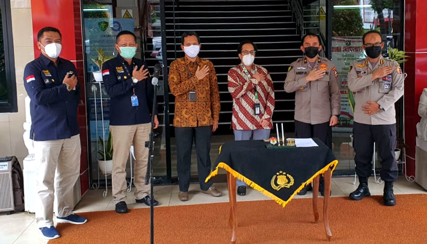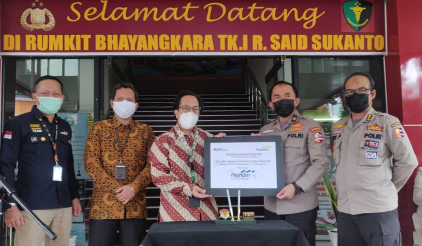 Kepala RS Bhayangkara Tk. I R. Said Sukanto, Brigjen dr. Asep Hendradiana (dua kanan) saat menerima secara simbolis bantuan satu set unit peralatan laboratorium mesin automatic realtime PCR yang diserahkan AVP CSR Dept Bank Mandiri Diwangkoro A. Ratam di Jakarta, Kamis (4/2). Melalui bantuan ini, Bank Mandiri berharap dapat mendukung upaya penguatan fasilitas pemeriksaan PCR untuk meningkatkan kecepatan dan kapasitas pemeriksaan sampling COVID-19. Dengan mesin PCR automatic ini, pemeriksaan sampling hanya akan membutuhkan waktu 4 jam, dari sebelumnya selama 1-2 hari, sehingga proses tracking dan tracing dapat segera dilakukan untuk menekan penyebaran virus covid-19.