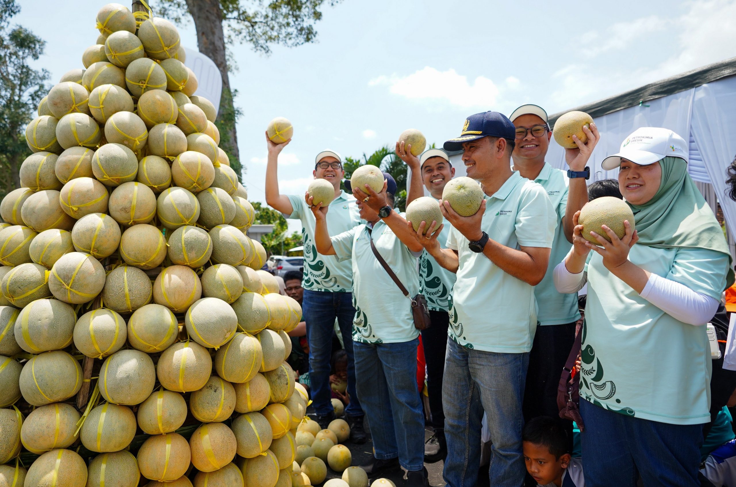 Selain panen raya, kegiatan apresiasi turut diisi dengan demonstrasi plot, penandatanganan mural sebagai simbol komitmen pengembangan budidaya, pawai tumpeng melon, serta pembagian 540 kilogram melon kepada masyarakat sebagai bentuk berbagi hasil panen.