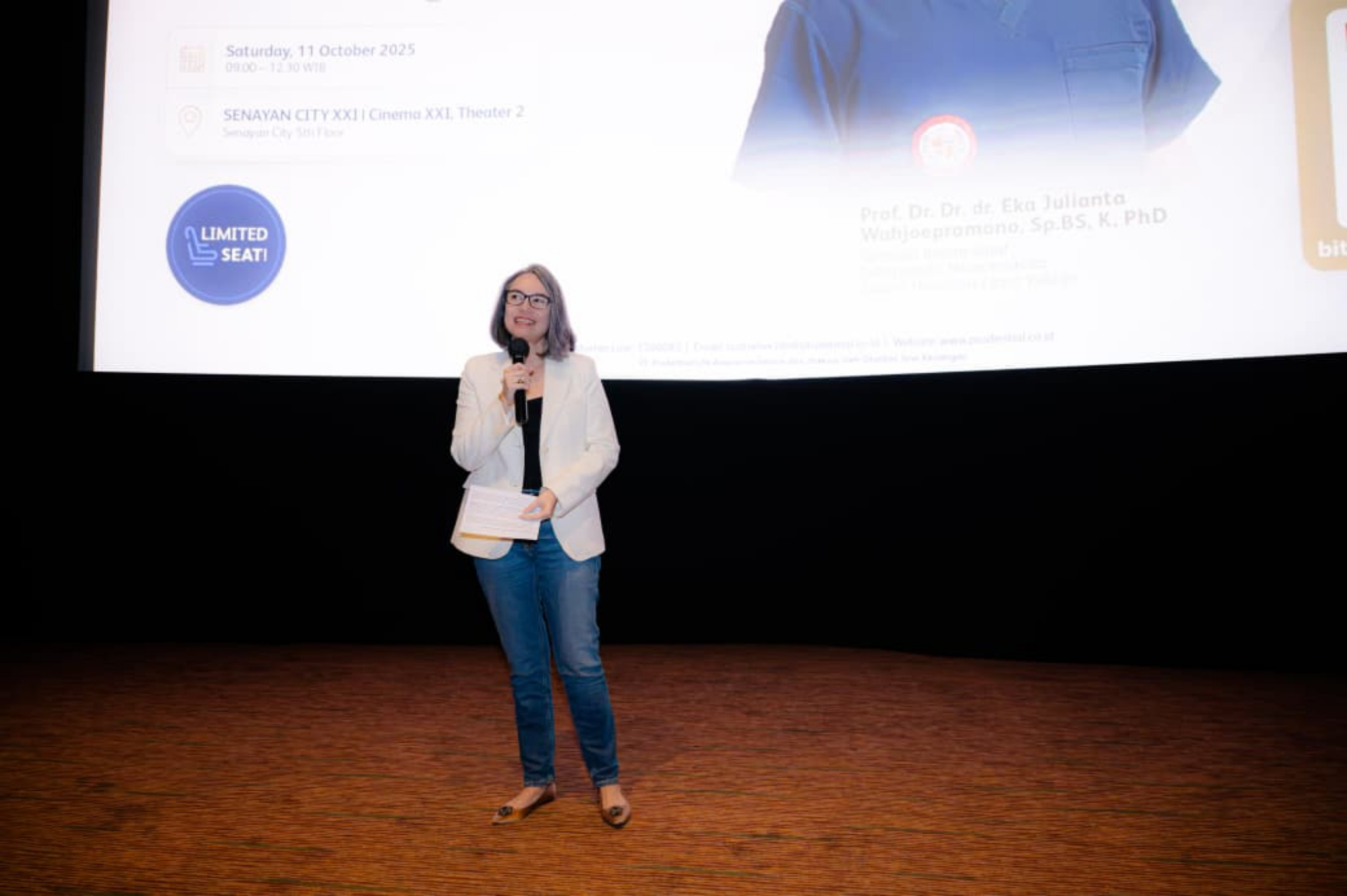Dewi Satriani, Chief Human Resources Officer Prudential Indonesia memberikan sambutan saat acara “The Amazing Human Brain & The Potential Catastrophe” Sabtu (11/10), di Jakarta.