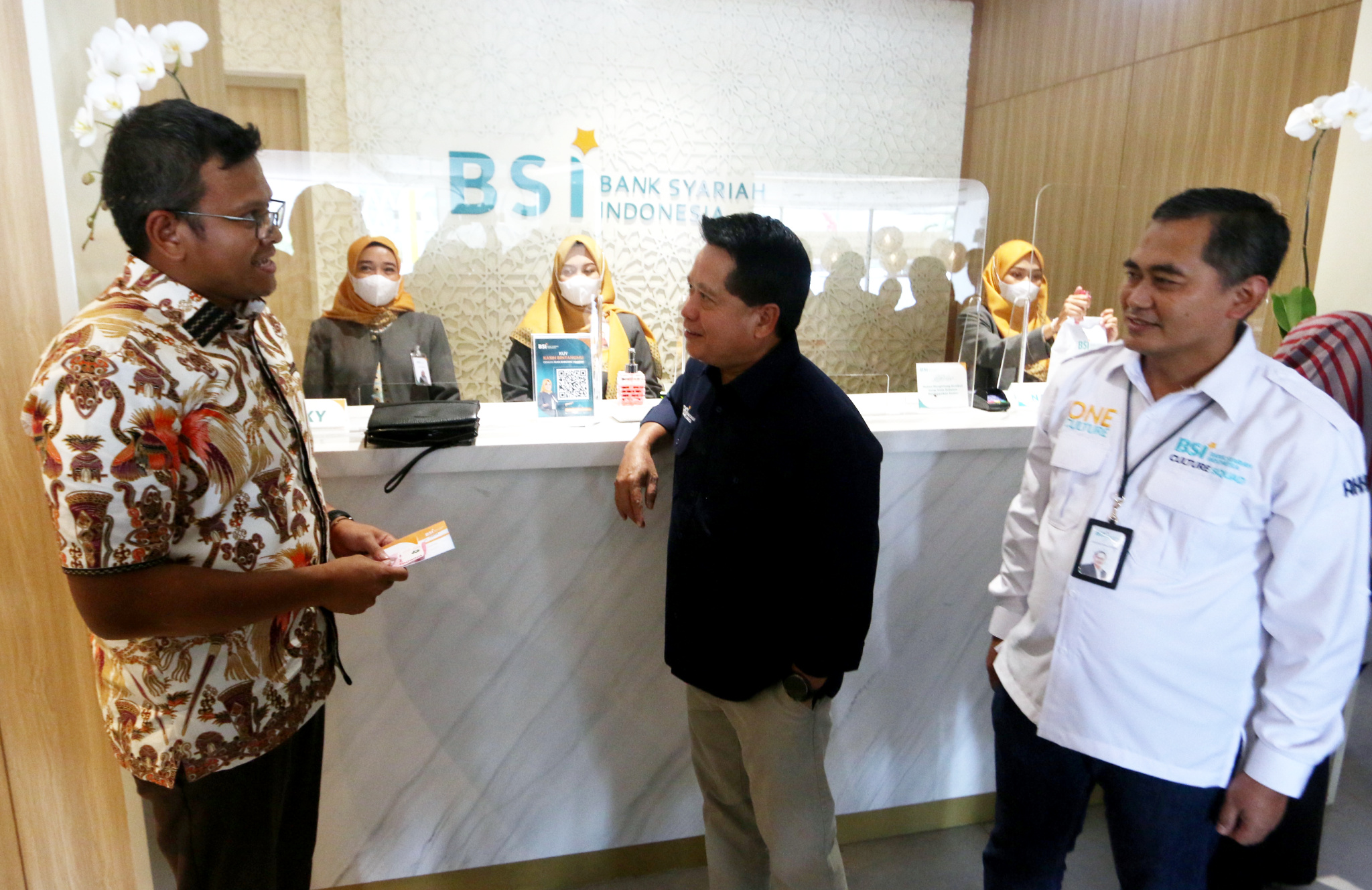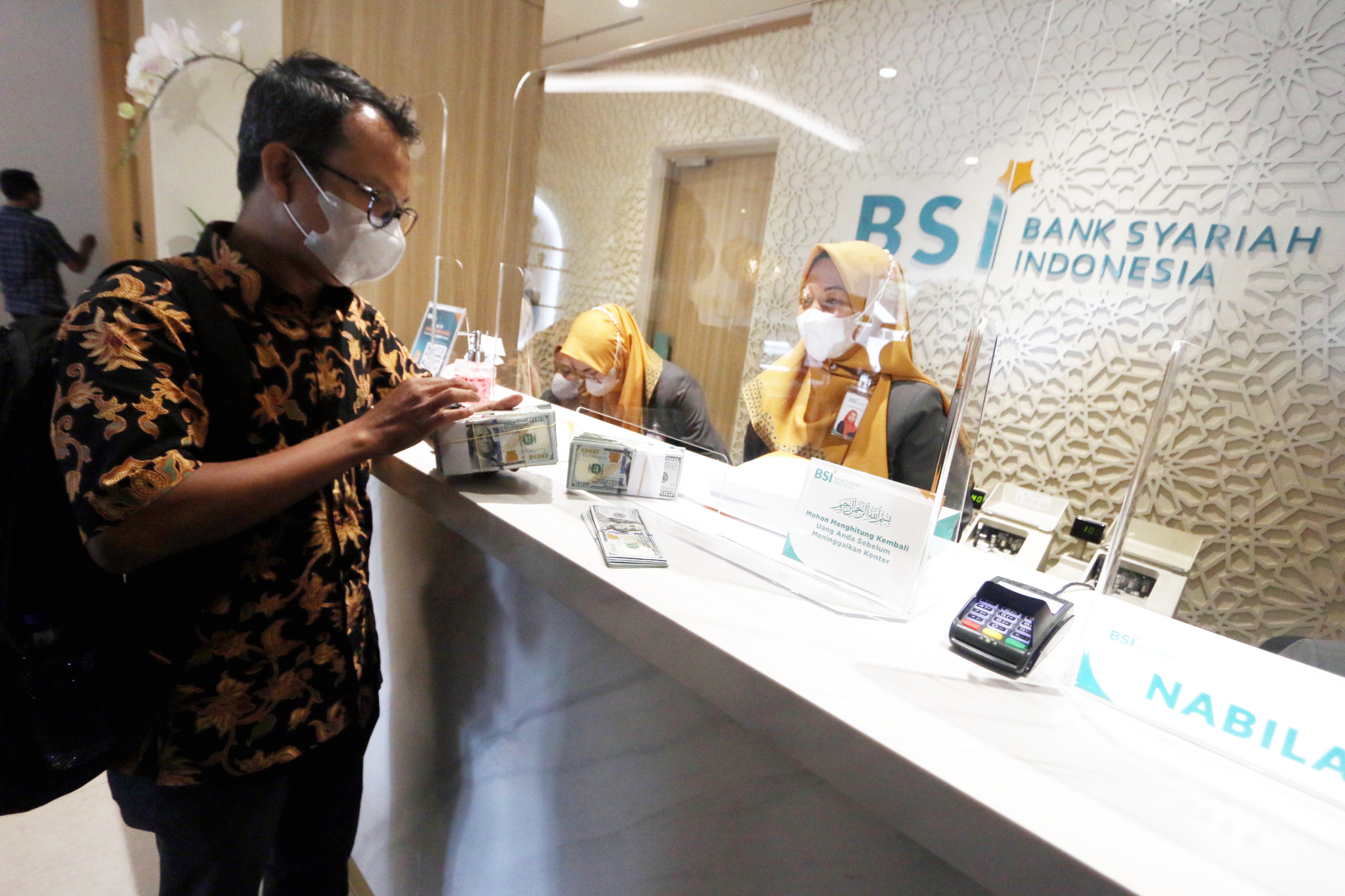 Teller BSI layani nasabah di Kantor Cabang Jakarta Thamrin. Layanan cabang dan ATM BSI mulai berangsur pulih di Jakarta ,Kamis (11/5). PT Bank Syariah Indonesia Tbk. (BSI) menyampaikan permohonan maaf atas kendala yang dialami nasabah dalam mengakses layanan BSI sekaligus menegaskan komitmen untuk menjaga keamanan dana dan data milik nasabah.