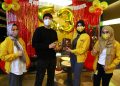AVP- Head of Retail Postpaid Indosat Ooredoo Reg. Jakarta Kartika Mirmaningtyas (kedua kanan) didampingi RCM Retail Cluster Manager Widi Hastuti (kiri), RSM Retail Store Manager Lusi Novita Sari (kanan) saat memberikan bingkisan kepada pelanggan dalam rangka merayakan HUT ke 53 Indosat Ooredoo di gerai Indosat Ooredoo Kota Kasablanka, Jakarta, Jumat (20/11/2020). Merayakan ulang tahun yang ke-53 Indosat Ooredoo melalui brand IM3 Ooredoo menghadirkan berbagai promo menarik untuk para pelanggannya, seperti; Freedom Apps 5GB hanya Rp1 melalui *123*53# atau melalui apps myIM3 berlaku untuk pelanggan prabayar dan pascabayar; diskon poin sebesar 53% untuk semua pelanggan yang terdaftar dalam program loyalitas IMPoin berlaku untuk semua reward IMPoin, baik itu reward yang berbentuk voucher belanja di Alfamart, Indomaret, maupun reward yang berbentuk uang elektronik seperti DANA, Gopay, serta OVO; pelanggan IM3 Ooredoo Prime bisa menikmati diskon tagihan hingga Rp500.000 dan bonus IMPoin hingga Rp30.000 setiap berlangganan Paket Prime (SIM Only) selama periode promo hingga 31 Desember 2020; Bundling Smartphone, setiap pembelian smartphone tipe tertentu mendapatkan bonus kuota hingga 36GB tanpa terpotong pulsa setelah melakukan isi ulang pertama mulai dari Rp20.000; bagi pelanggan pascabayar, IM3 Ooredoo memberikan diskon hingga Rp1.430.000 untuk paket bundling pembelian smartphone Samsung, Oppo, dan Vivo terbaru dengan paket bundling Super Plan 150 dengan masa berlangganan selama 12 bulan.