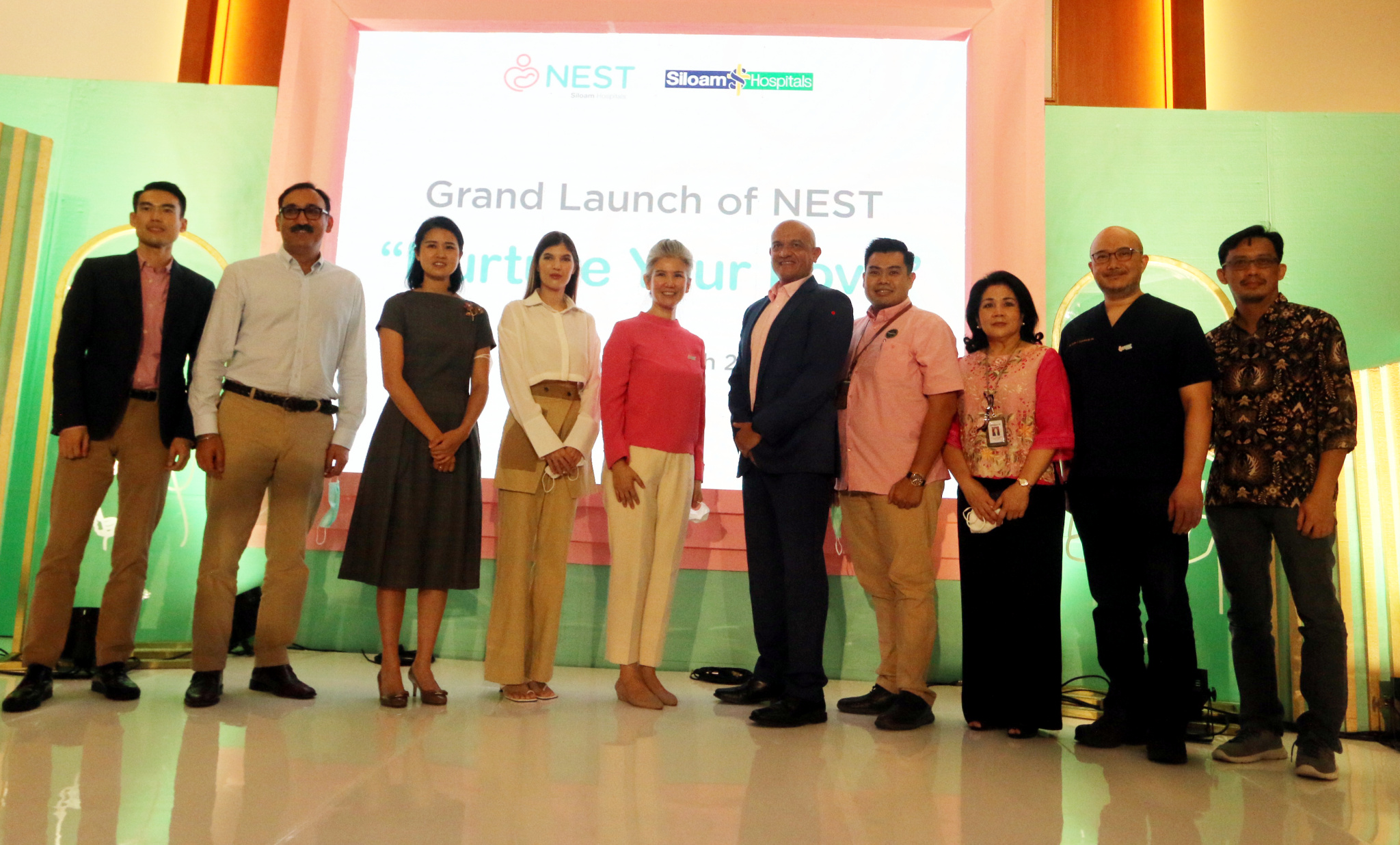Dari kiri: : Varun Khanna – Healthcare Business and Investments Managing Director Siloam Hospitals Group, Caroline Riady – Deputy President Director Siloam Hospitals Group, Mikaila Patritz – Public Figure & Pasien NEST, dr. Dewi Anggraini, MARS – CEO Siloam Hospitals TB Simatupang berbincang bersama usai meluncurkan program kehamilan unggulan, NEST di RS Siloam TB Simatupang dan sekaligus RS Siloam Sriwijaya Palembang. Kamis (11/5/2023). Program NEST merupakan program layanan kehamilan paling komprehensif yang dirancang untuk mempersiapkan orang tua baru dalam menyambut sang buah hatinya. Dengan tagline #NurtureYourLove, program NEST memberikan pelayanan, bimbingan, dan dukungan terbaik dalam mempersiapkan kelahiran si kecil. Tenaga medis NEST hadir untuk membantu kehidupan baru orang tua dalam perencanaan kehamilan, selama masa kehamilan hingga persalinan.
