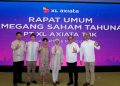 (ki-ka) Direktur & Chief Commercial Officer – Home & Convergence XL Axiata, Abhijit J. Navalekar, Presiden Direktur & CEO XL Axiata, Dian Siswarini, Direktur & Chief Digital Transformation & Enterprise Business Officer XL Axiata, Yessie D. Yosetya, Direktur & Chief Commercial Officer – Consumer XL Axiata, David Arcelus Oses, Direktur & Chief Technology Officer XL Axiata, I Gede Darmayusa, dan Direktur & Chief Finance Officer XL Axiata, Feiruz Ikhwan foto bersama di sela-sela acara RUPS Tahunan 2023 XL Axiata pada Jumat (5/5), di Jakarta. Rapat menyetujui penggunaan 50% dari keuntungan setelah penyesuaian, untuk dibagikan sebagai dividen kepada para pemegang saham. Selain itu, rapat juga menyetujui perubahan susunan Direksi terkait penggantian Direktur Keuangan seiring dengan mundurnya Budi Pramantika. Sebagai penggantinya adalah Feiruz Ikhwan, seorang profesional yang sebelumnya berkarir di sejumlah perusahaan di bawah Axiata Group Bhd, termasuk di XL Axiata. Sebelum bergabung kembali ke XL Axiata, Feiruz Ikhwan menjabat sebagai Chief Financial Officer dan Acting CEO Smart Axiata di Kamboja.