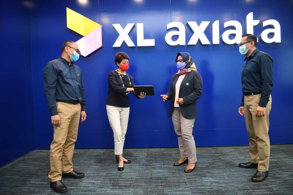 (ki-ka) Direktur & Chief Teknologi Officer XL Axiata, I Gede Darmayusa, Direktur & Chief Information-Digital Officer XL Axiata, Yessie D. Yosetya, Presiden Direktur & CEO XL Axiata, Dian Siswarini dan Direktur & Chief Financial Officer XL Axiata, Budi Pramantika dalam acara Rapat Umum Pemegang Saham Luar Biasa XL Axiata di Jakarta, Selasa (27/10). Pada Rapat Umum Pemegang Saham Luar Biasa XL Axiata tetapkan susunan direksi baru.