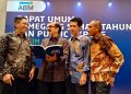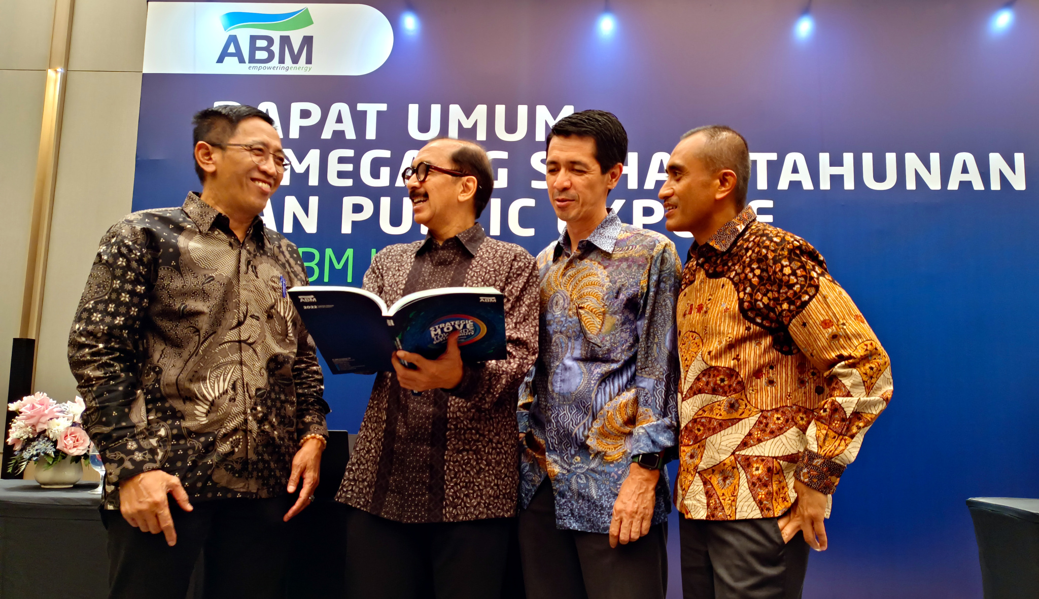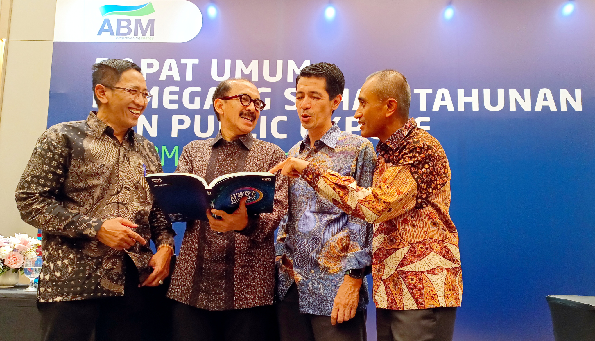 Direktur PT ABM Investama Tbk. (ABMM) Haris Mustarto (dari kiri), Direktur Adrian Erlangga, Chief Information Officer Doni Syamsurianto, dan Chief Financial Officer Hans Christian Manoe berbincang seusai Rapat Umum Pemegang Saham Tahunan (RUPST) di Jakarta, Rabu (10/5). Berpijak pada perolehan laba bersih sebesar US$270 juta sepanjang 2022, PT ABM Investama Tbk. (ABMM) melalui RUPST tersebut menyetujui pembagian dividen sebesar US$75 juta atau setara Rp1,1 triliun kepada pemegang saham.