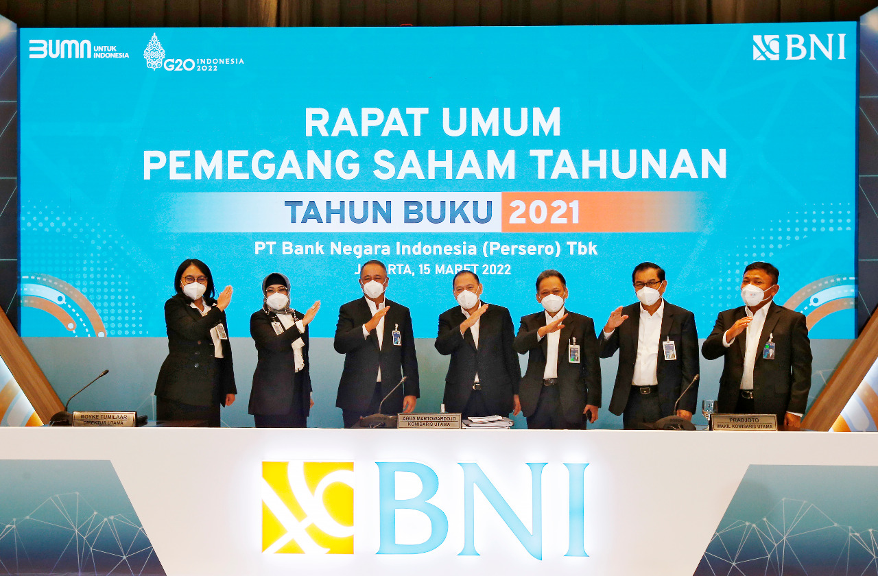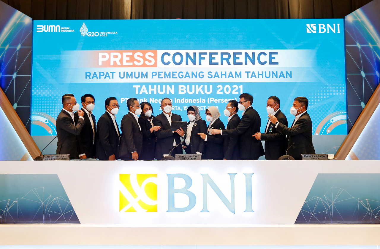 RUPST BNI menyetujui pembagian dividen sebesar 25% dari laba bersih tahun buku 2021 atau setara Rp 2,72 triliun, untuk dibagikan sebagai dividen tunai kepada para pemegang saham. Nilai dividen tahun buku 2021 ini naik 3,3 kali lipat dari dividen tahun buku 2020 yang sebesar Rp 820,1 miliar. Dengan memperhitungkan komposisi saham milik pemerintah yang sebesar 60%, maka BNI akan menyetorkan dividen senilai Rp 1,63 triliun ke rekening Kas Umum Negara.