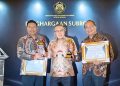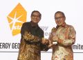 CEO Star Energy Geothermal (SEG), Hendra Soetjipto Tan (kiri) dan Act. Group Chief Power Plant Operations Officer SEG, Suharsono Darmono (kanan) berfoto bersama Direktur Jenderal Energi Baru Terbarukan dan Konservasi Energi (EBTKE) Kemen ESDM Yudo Dwinanda Priaadi (tengah) seusai menerima penghargaan Subroto Award 2023 yang diselenggarakan Kementerian Energi dan Sumber Daya Mineral (ESDM) di Jakarta, Jumat (29/9/2023). Pada ajang tahun ini, SEG memenangkan dua penghargaan yaitu Pemenang kategori Penilaian Kinerja Pengendalian Pencemaran dan/atau Kerusakan Lingkungan Panas Bumi untuk SEG Salak, Ltd dan Pemenang kategori Penilaian Kinerja Penerapan K3 & Keteknikan Panas Bumi untuk SEG Darajat II, Limited.