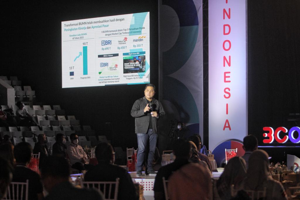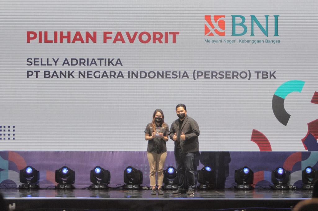 Menteri BUMN Erick Thohir (kanan) memberikan penghargaan kepada VP Corporate Communication & CSR PT Bank Negara Indonesia (Persero) Tbk. (BNI) Selly Adriatika sebagai pemenang juara favorit Corporate Communication of the year di Jakarta, Rabu (23/3). Selly Adriatika Sukses Meningkatkan :