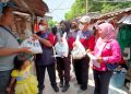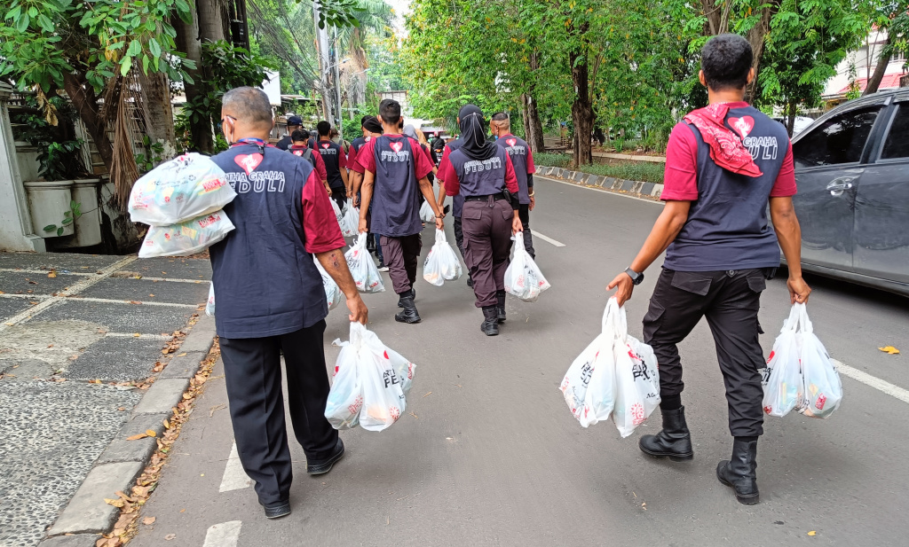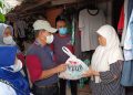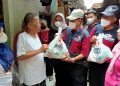 Koordinator Lapangan Sembako Gratis AGP unit usaha Sekuriti Grup Artha (SGA) Chaerul Fasyah (ketiga kanan) secara langsung memberikan bantuan paket sembako gratis kepada masyarakat duafa di Pulobesar Sunter Jaya, Jakarta Utara, Senin (12/9/2022). Artha Graha Peduli (AGP) menyiapkan 50 ribu paket sembako gratis untuk masyarakat terdampak kenaikan harga BBM bersubsidi yang membutuhkan khususnya para disabilitas, warga kurang mampu, dhuafa, lansia, yatim piatu yang bermukim di radius 5 km dari unit usaha Artha Graha Grup di seluruh Indonesia. Selain itu AGP juga memberikan bantuan langsung tunai (BLT) kepada 30 ribu karyawan Artha Graha Grup serta Artha Graha Network dengan gaji UMR.