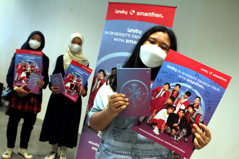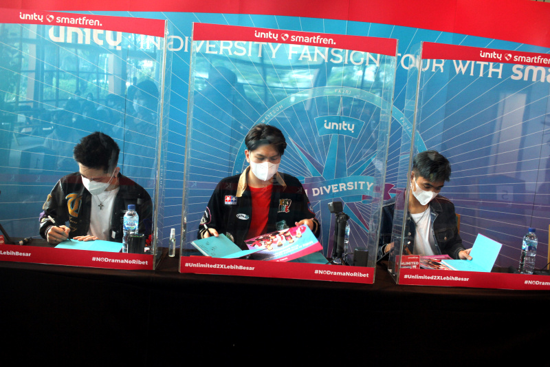 Smartfren mengajak UN1TY menyapa pelanggan setia dan YOUN1T di acara terbatas fansign roadshow UN1TY in Diversity di Jakarta (25/2). Mereka yang beruntung hadir di acara ini mendapatkan kesempatan ngobrol singkat, tanda tangan dan merchandise spesial dari seluruh anggota UN1TY. Rangkaian acara ini rencananya akan diselenggarakan di total 15 kota di Indonesia._