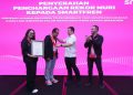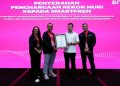 (Ki-ka)Edtine Pamilien Gensana – Div Head Brand Communication SMARTFREN XLSMART, Bapak Sukaca Purwokardjono – Chief Marketing Officer SMARTFREN XLSMART, Bpk Osmar Semesta Susilo – Wakil Direktur Utama MURI dan Group Head Corporate Communication and sustainability XLSMART, Reza Mirza saat menerima rekor muri di Jakarta,Senin(3/11). SMARTFREN berhasil mencatatkan rekor nasional sebagai “Penyedia Layanan Telekomunikasi yang Menyelenggarakan Ajang Lari Terbanyak dalam Waktu Satu Tahun” melalui program Smartfren Fun Run 2025. Dalam kurun satu tahun, Smartfren sukses menggelar rangkaian kegiatan fun run di 22 kota di seluruh Indonesia, menjangkau lebih dari 15 ribu peserta dari berbagai usia dan latar belakang.