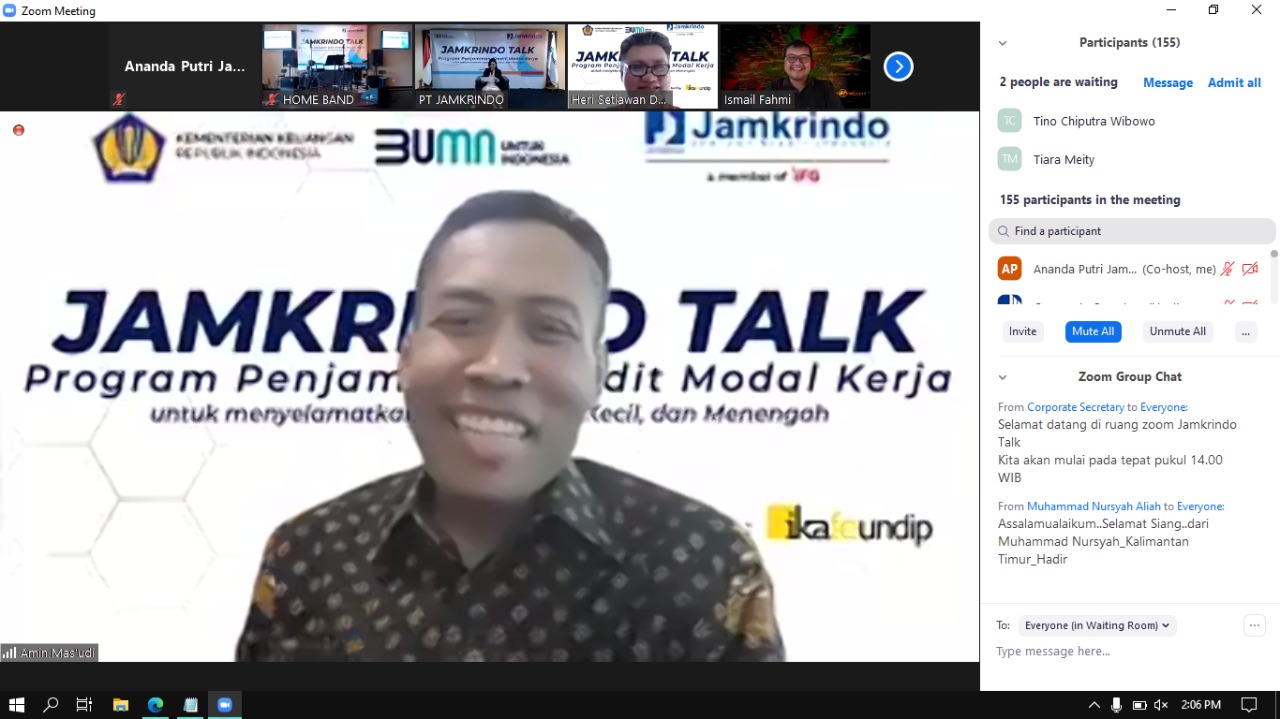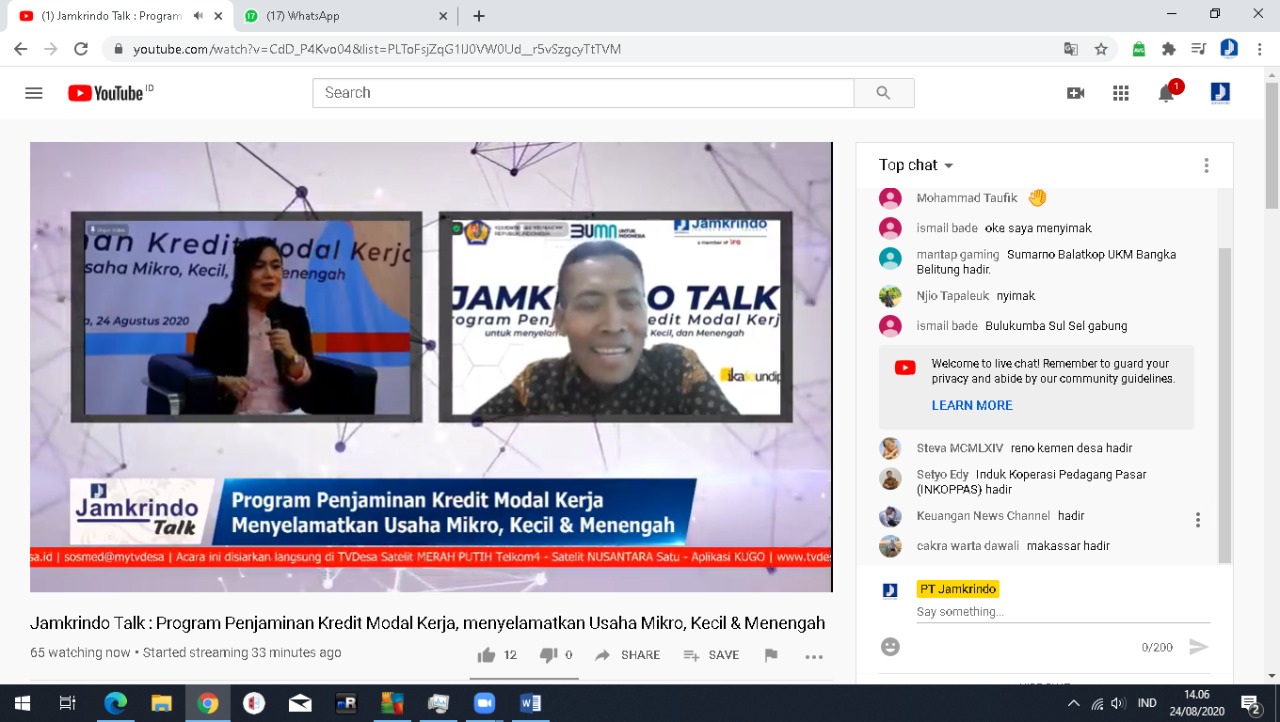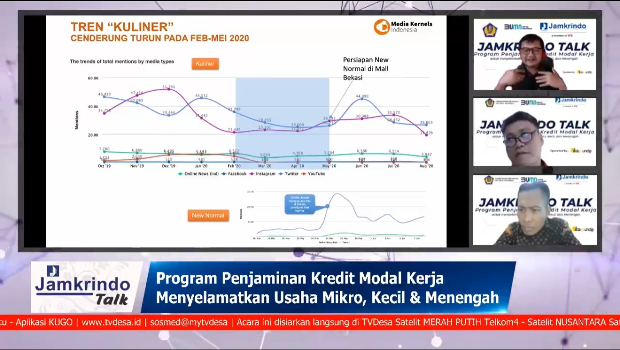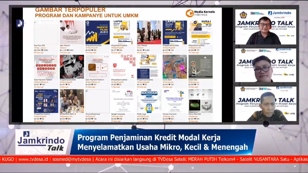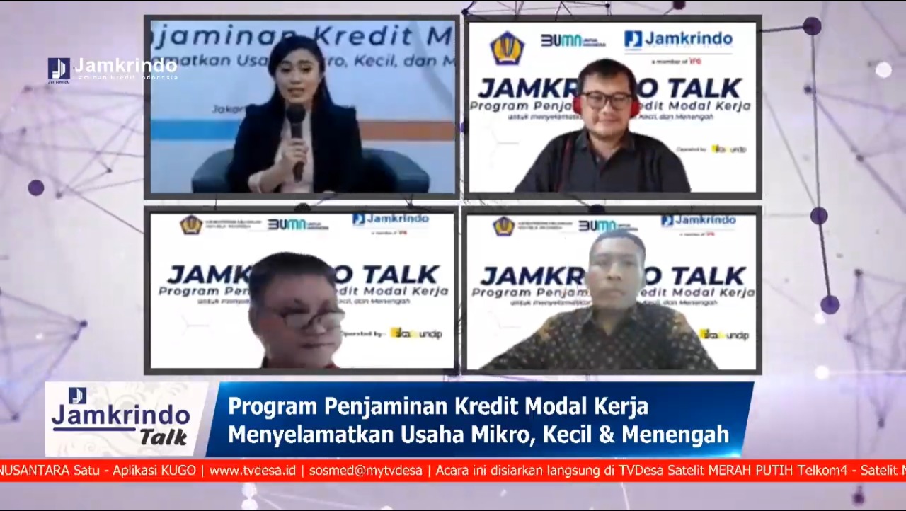 PT Jamkrindo gencar melakukan sosialisasi penjaminan kredit modal kerja (KMK) untuk usaha mikro, kecil, dan menengah (UMKM) dalam rangka Pelaksanaan Program Pemulihan Perekonomian Nasional atau PEN. Pada Hari ini, perusahaan terbesar di bidang penjaminan kredit tersebut menggelar acara webinar Jamkrindo Talk dengan tema “Penjaminan Kredit Modal Kerja untuk Menyelamatkan UMKM’ pada Senin 24 Agustus 2020.