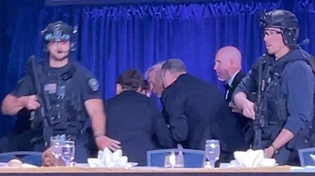 Acara itu dihadiri Presiden AS Donald Trump. Namun, acara langsung dihentikan setelah suara tembakan terdengar dari luar ballroom utama.