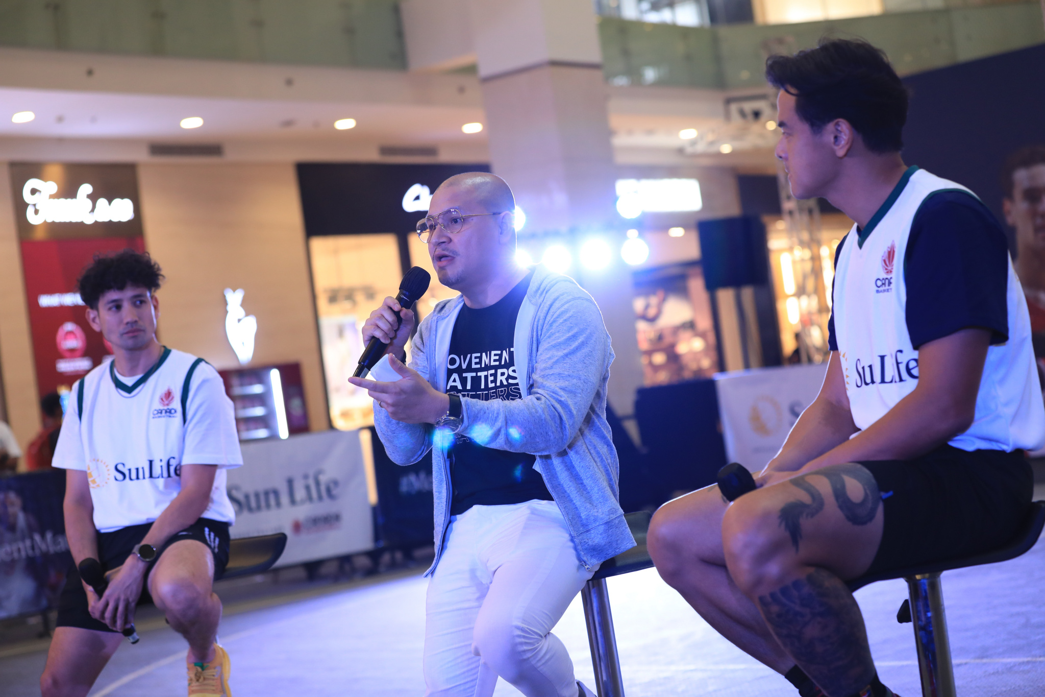 Tarra Budiman, Kaiser Simanungkalit (VP Branding, Comms & CX Sun Life Indonesia), dan Dion Wiyoko dalam Press Conference Sun Life Celebrity & Basketball Weekend. Para pemain berkesempatan mengikuti pertandingan Acara ini menjadi satu bagian dari rangkaian Kampanye #MovementMatters, dimana Sun Life ingin lebih lagi mengajak masyarakat Indonesia bergerak aktif dan sehat, melalui olahraga Basket.