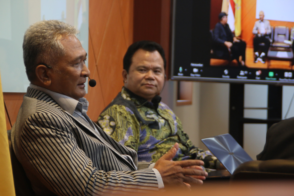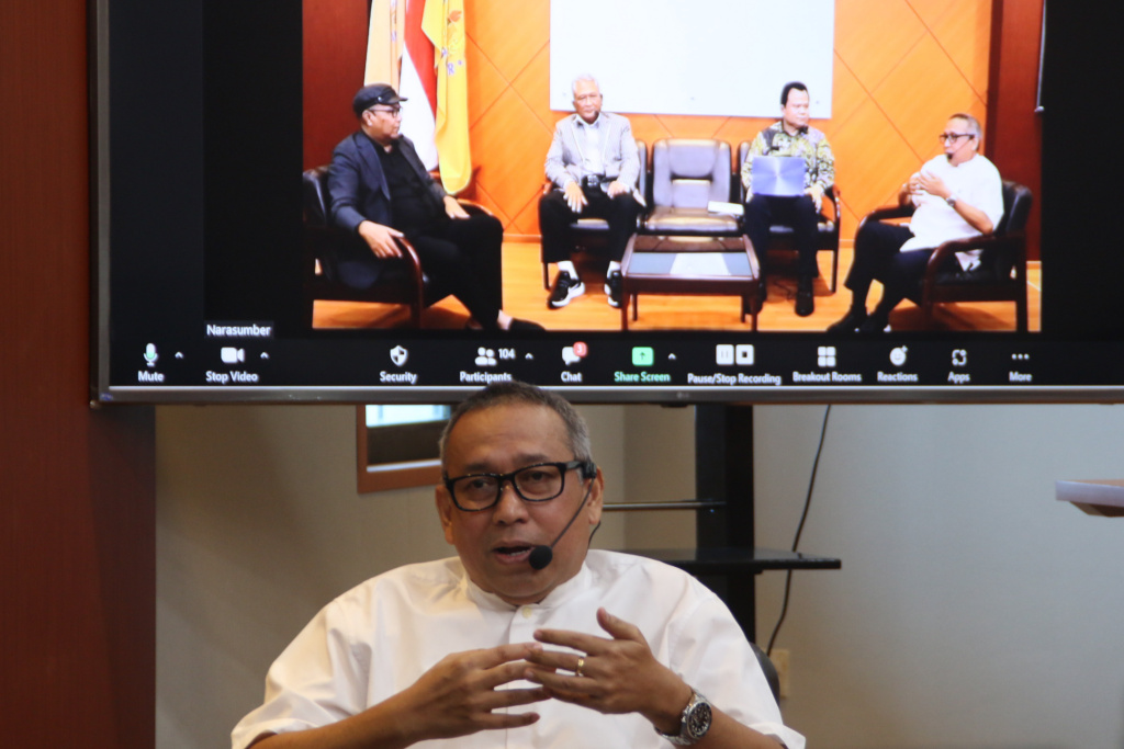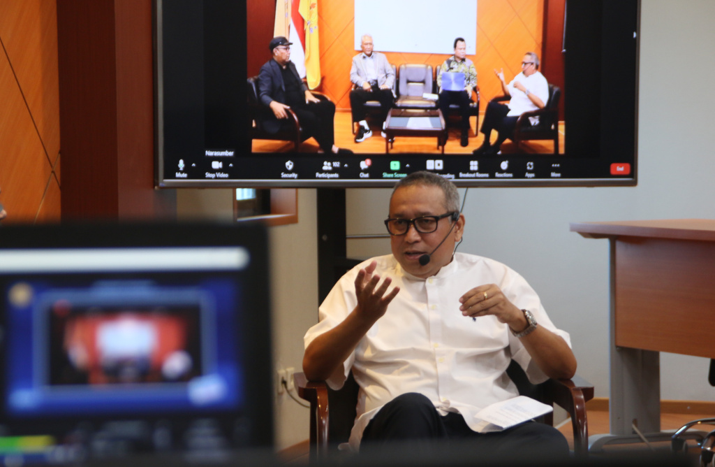 Kanan ke Kiri: Direktur Pascasarjana Universitas Borobudur Prof. Dr. Faisal Santiago, SH., Praktisi Hukum, Mantan Kadiv Humas Polri Irjen Pol (Purn) Dr. Ronnie F. Sompie, dan Ketua Asosiasi Pimpinan Perguruan Tinggi Hukum Indonesia, Prof. Dr. Ade Saptomo, serta dosen FH Universitas Malahayati Dr Nurlis Effendi SH MH, saat berbicara dalam Talkshow “Judi Era Digital, Binary Option dan Konsekuensi Hukumnya” yang digelar Program Doktor Hukum Universitas Borobudur, Jakarta, Selasa (11/4/2022).