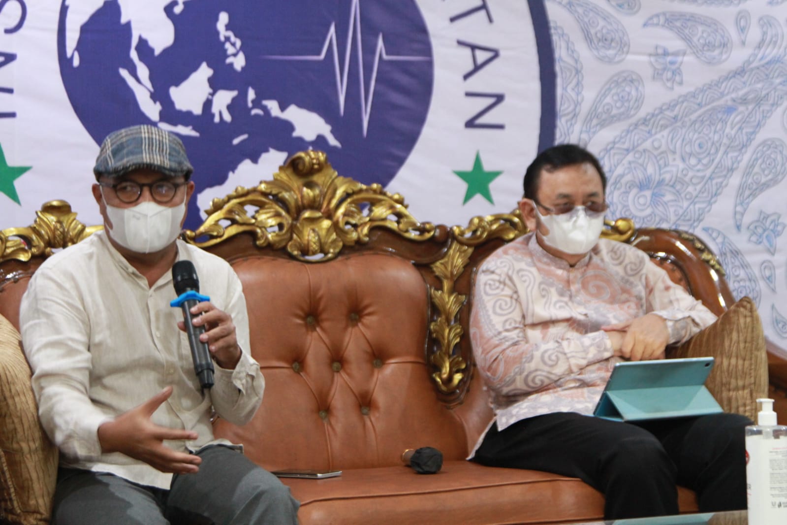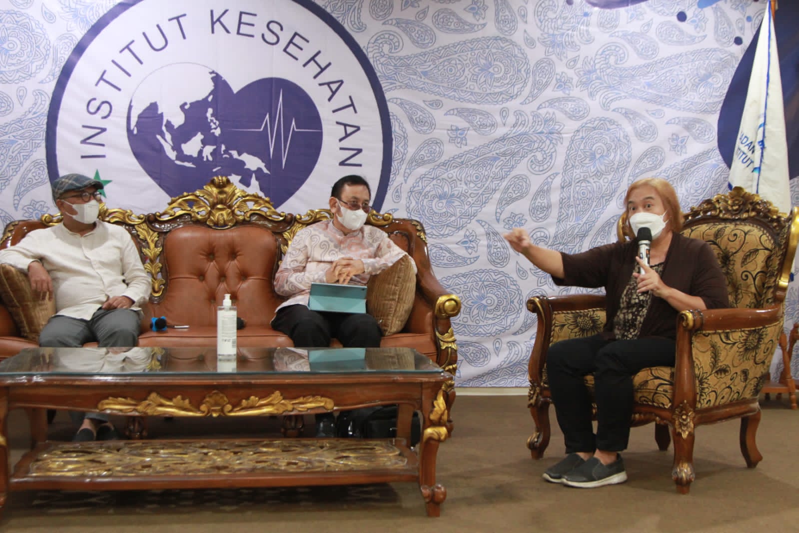 Kiri ke kanan: Rektor Institut Kesehatan Indonesia (IKI) Dr. Nurlis Effendi, SH, MH, Peneliti BRIN Dr. drh. Didik Budijanto, M. Kes. dan Pakar Spesialis Emergency, Ahli Gigitan Ular Berbisa, Dr. Tri Maharani, M. Si. Sp.EM. Saat talkshow dengan tema “Transformasi Kesehatan Indonesia, Seperti Apa?” di Kampus IKI, Kelapa Gading, Jakarta, Sabtu, 9 April 2022.