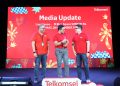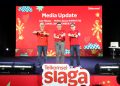 Director of Marketing Telkomsel Derrick Heng (kanan) , bersama Director of Sales Telkomsel Stanislaus Susatyo (kiri), dan Director of Network Telkomsel Indra Mardiatna, memperlihatkan Telkomsel Siaga disela perkenalannya di Jakarta, Jumat (28/11/2025). Menyambut momen Natal 2025 dan Tahun Baru 2026 (NARU), Telkomsel menegaskan komitmennya untuk #MelayaniSepenuhHati dengan menghadirkan jaringan yang andal, layanan pelanggan yang mudah dijangkau, serta ragam produk dan penawaran spesial untuk mendukung pengalaman digital terbaik bagi masyarakat Indonesia.