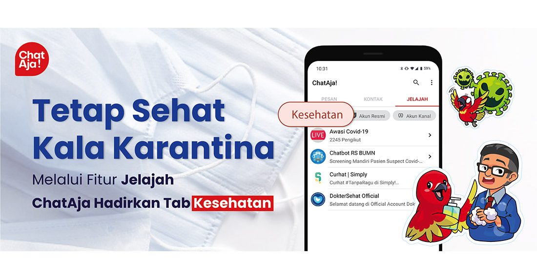 Selain itu pada pembaruan kali ini, ChatAja juga menghadirkan tab Kesehatan dalam fitur Jelajah. Jelajah adalah fitur dari ChatAja yang berisi berbagai akun kanal berita, gim gratis, layanan konseling, konsultasi karir, dan lain sebagainya.
