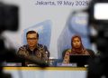 (Kika) Head of Fixed Income Research Mandiri Sekuritas Handy Yunianto, Head of Industry & Regional Research Department Bank Mandiri Dendi Ramdani, Chief Economist Bank Mandiri Andry Asmoro, Head of Macroeconomic & Financial Market Research Department Bank Mandiri Dian Ayu Yustina, Head of Industry & Regional Research Department Bank Mandiri Dendi Ramdani, Head of Mandiri Institute Bank Mandiri Andre Simangunson dan Head of Equity Research Mandiri Sekuritas Adrian Joezer saat berbincang di sela pemaparan Indonesia Economic Outlook Mandiri Group Triwuln II/2025 di Plaza Mandiri, Jakarta, Senin (19/5). Tim ekonom Mandiri Group menyebutkan ekonomi Indonesia memasuki fase normalisasi ke arah pola pertumbuhan yang lebih sehat dan seimbang pasca efek basis tinggi dampak pemilu 2024, dengan proyeksi laju pertumbuhan ekonomi di kisaran 4,93%. Untuk mengakselerasi ekonomi, Indonesia membutuhkan penguatan sinergi kebijakan fiskal dan moneter, apalagi mengingat adanya tantangan eksternal akibat dinamika kebijakan perdagangan global dan ketegangan geopolitik