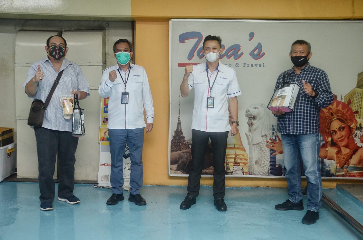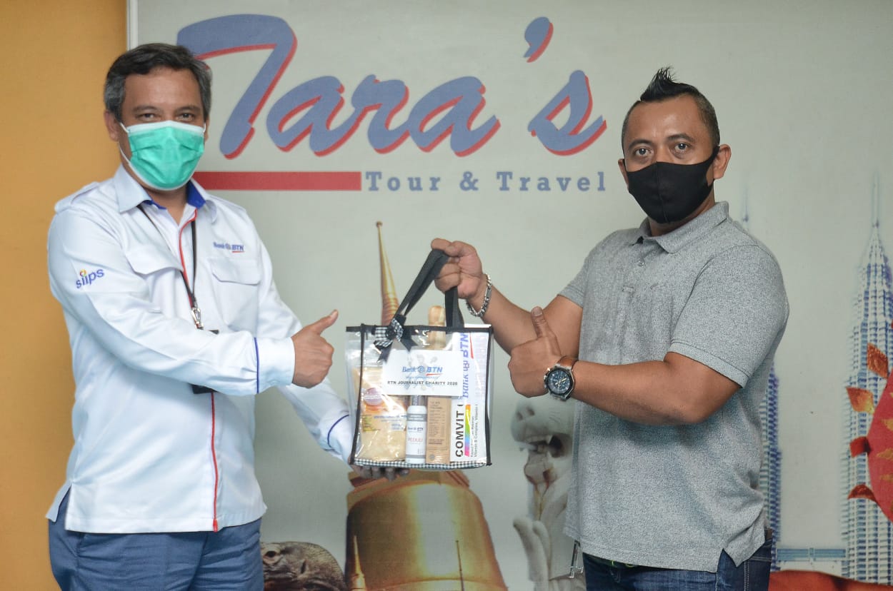 Direktur Finance, Planning, & Treasury PT Bank Tabungan Negara (Persero) Tbk. Nixon L. P. Napitupulu bersama Corporate Secretary Bank BTN Ari Kurniaman menyerahkan bantuan kepada para jurnalis dari beberapa media di Jakarta, Rabu (17/11). Bank BTN membagikan paket imunitas melawan covid-19 agar awak media dapat terus menjalankan tugasnya dalam memberikan informasi kepada masyarakat luas. Adapun paket imunitas tersebut antara lain berisi multivitamin, jahe, madu, handsanitizer, masker yang diharapkan dapat membantu tingkatkan imun awak media sekaligus sebagai wujud perseroan dalam mendukung pemerintah menerapkan Adaptasi Kebiasaan Baru menanggulangi penyebaran Covid-19 di Indonesia.