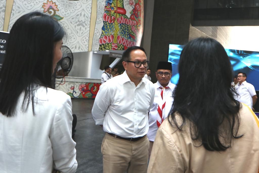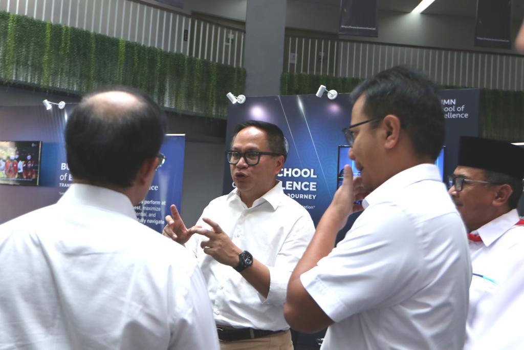 Wakil Menteri BUMN Kartika Wirjoatmodjo (kedua dari kanan), bersama Sekretaris Kementerian BUMN Rabin Indrajad Hattari (tengah) didampingi Deputi Bidang Keuangan dan Manajemen Risiko Kementerian BUMN Nawal Nely (kiri) dan Deputi Bidang Manajemen Sumber Daya Manusia (SDM), Teknologi dan Informasi Kementerian BUMN Tedi Bharata (kedua kiri) beserta Direktur Kepatuhan dan SDM Bank Mandiri sekaligus Ketua Pengurus BUMN School of Excellence Agus Dwi Handaya (kanan) saat peresmian BUMN School of Excellence di Mandiri University Nawasena, Jakarta, Sabtu (28/10). Kehadiran institusi pengembangan kompetensi dan profesionalitas ini dapat menjadi tempat berkembang dan berkontribusi terbaik bagi para insan BUMN di seluruh Indonesia. Sehingga dapat membentuk Leader BUMN yang mampu berperan sebagai agen pembangunan, pemimpin bisnis dan sebagai pemimpin SDM.