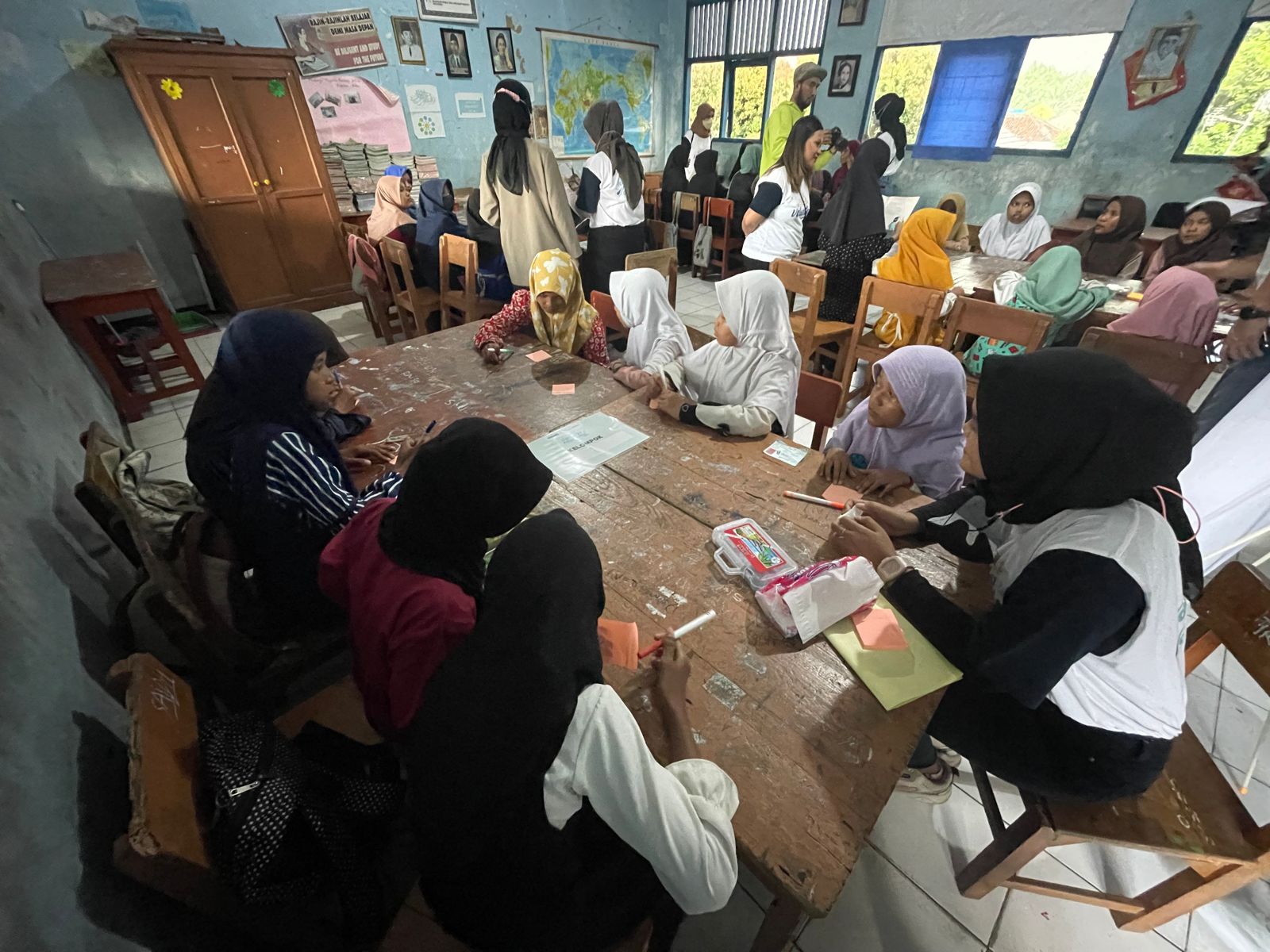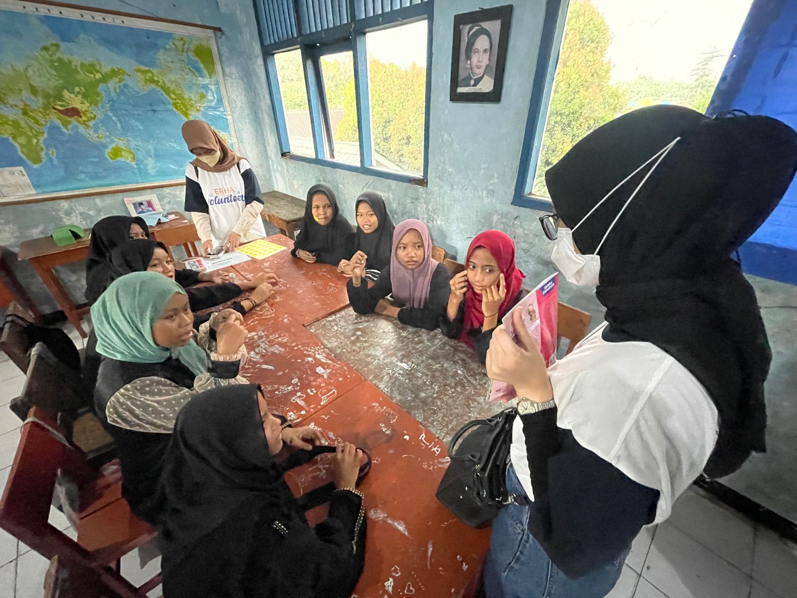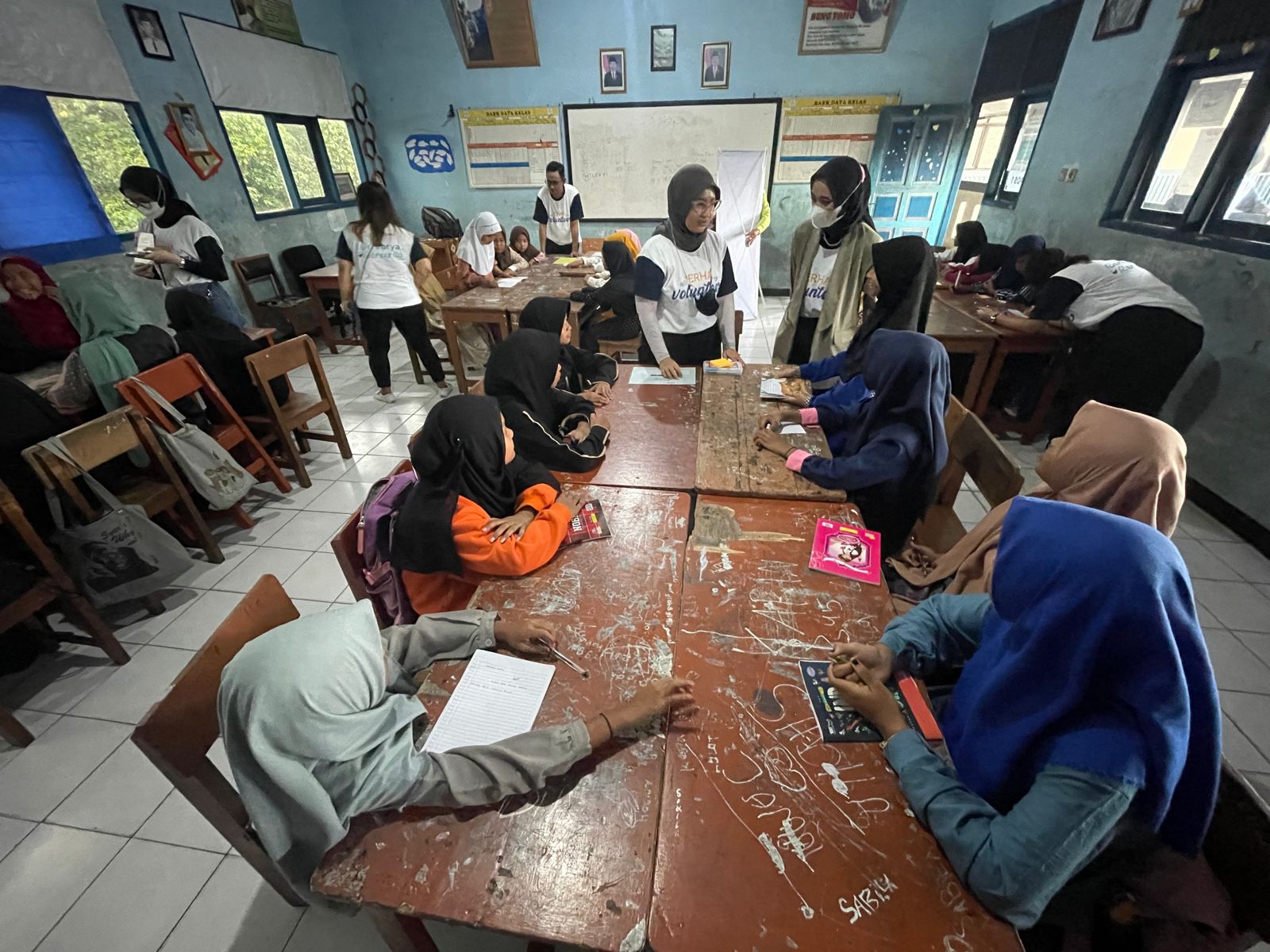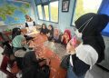Seorang relawan dari Komunitas Erha Acne Free Universe membacakan cerita untuk anak-anak di saat pelaksanaan program Berkarya Bercerita di Sekolah Dasar Dinamika, Bekasi Jawa Barat (9/4/2023). Program Berkarya Bercerita yang digagas ERHA anak usaha dari Arya Noble Group ditujukan menyediakan fasilitas untuk mengasah literasi, membaca dan menulis serta meningkatkan minat belajar pada anak sekaligus mendukung upaya pemerintah dalam pemerataan Pendidikan di Indonesia.