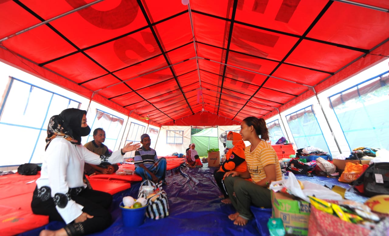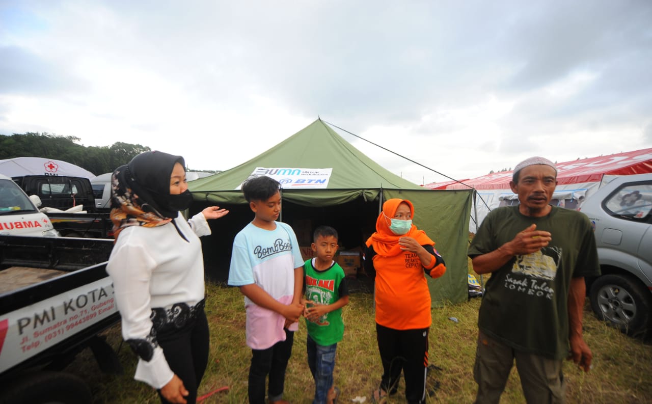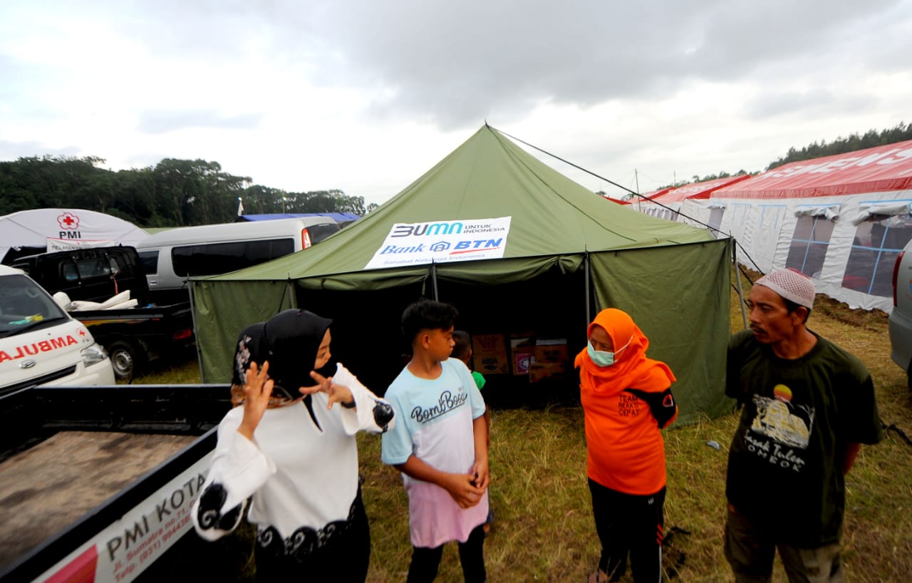 BPBD Kabupaten Lumajang Amni Najmi berdialog dengan beberapa warga terdampak Erupsi Semeru yang tinggal sementara di tenda-tenda pengungsian yang disiapkan oleh Pemerintah Daerah Lumajang, Jawa Timur pada Senin (13/12). Bank BTN memberikan komitmen bantuan sosial kepada masyarakat terdampak tersebut sebesar Rp1 Milyar yang merupakan hasil sumbangan BTN Runner yang dikumpulkan dari jarak KM yang ditempuh oleh para peserta pada saat acara BTN Run dalam rangka HUT KPR ke45. Sebelumnya bank yang fokus pada pembiayaan perumahan ini juga telah memberikan bantuan sosial berupa obat-obatan, makanan, selimut, tenaga medis, tenda pengungsian dan kebutuhan lain yang diperlukan warga selama berada di pengungsian.