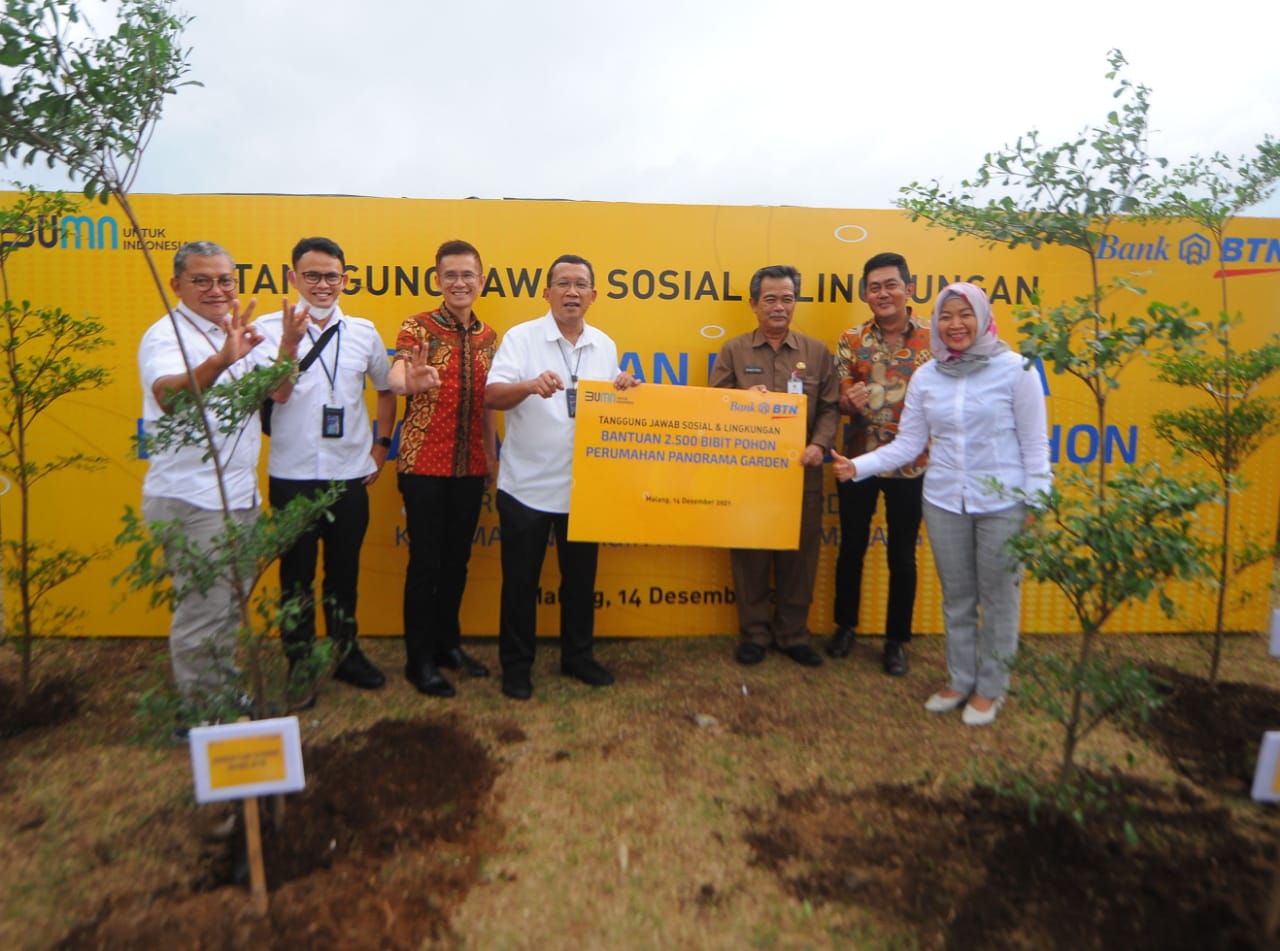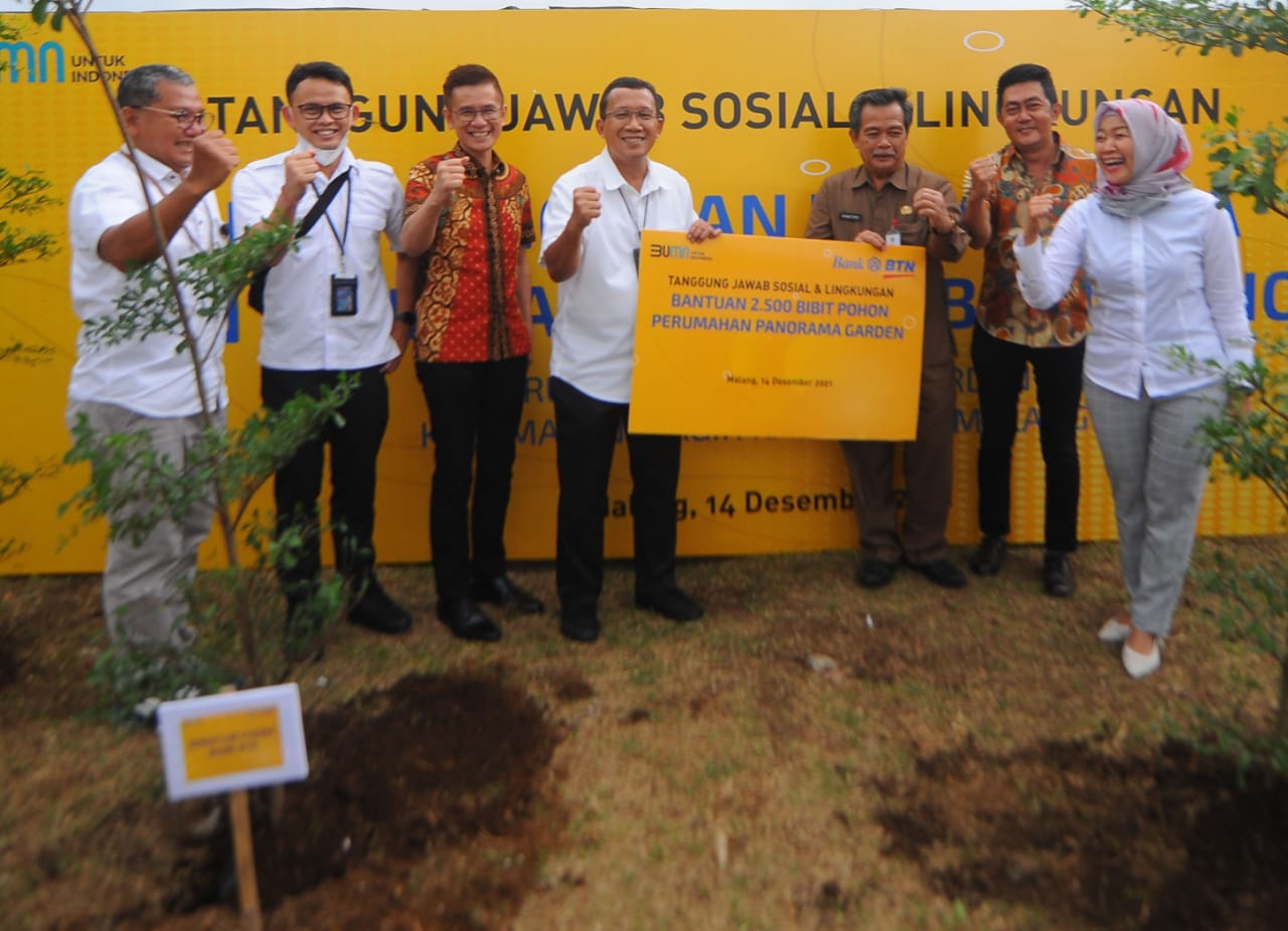 Direktur Utama PT Bank Tabungan Negara (Persero) Tbk Haru Koesmahargyo sedang meninjau perumahan Panorama Garden di wilayah Malang, Jawa Timur usai melakukan ceremony penanaman 2.500 bibit pohon di perumahan tersebut pada Selasa (15/12). Pada kunjungan tersebut turut mendampingi adalah Kepala Kanwil III Bank BTN Iriska Dewayanti, Kepala Cabang BTN Malang Surasta, Corporate Secretary BTN Ari Kurniaman dan Pengembang perumahan tersebut. Perseroan berfokus pada pembiayaan perumahan yang mendukung ramah lingkungan dengan menerapkan area hijau di lingkungan perumahan atau masyarakat sebagai debitur BTN turut berperan serta dengan menanam pohon di lingkungan rumahnya.