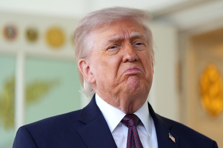 President Donald Trump speaks outside the Oval Office of the White House, Monday, April 13, 2026, in Washington. (AP Photo/Alex Brandon)
