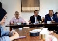 Dari Kiri : Direktur Keuangan dan Manajemen Risiko Kliring Berjangka Indonesia Adiyasa Suhadibroto, Direktur Utama Kliring Berjangka Indonesia Budi Susanto dan Direktur Pengembangan Bisnis dan Operasional Saidu Solihin saat menyampaikan laporan kinerja kepada media di Jakarta, Rabu (30/4). PT Kliring Berjangka Indonesia (KBI) mencatat nilai transaksi resi gudang sebesar Rp 2.871 triliun sepanjang 2024. Nilai tersebut berasal dari penerbitan 1.508 resi gudang, didorong oleh meningkatnya aktivitas perdagangan berjangka komoditas, khususnya komoditas pangan seperti kedelai dan beras.