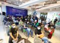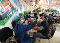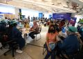 Presiden Direktur & CEO XL Axiata, Dian Siswarini (kiri) bersama dengan Direktur & Chief Technology Officer XL Axiata I Gede Darmayusa (kanan) dan Chief Human Capital Officer XL Axiata, M. Hira Kurnia meny ( kedua kiri) meninjau salah satu keluarga karyawan yang akan mendapatkan vaksin dalam acara Program Vaksinasi Gotong Royong untuk karyawan dan keluarganya di Jakarta, Rabu (16/6/2021).