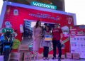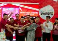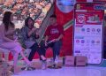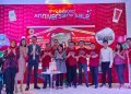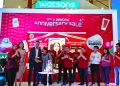 Presiden Direktur Watsons Indonesia Lilis Mulyawati didampingi jajaran manajemen Watsons Indonesia menyerahkan kue ulang tahun kepada Christian Sugiono pada acara perayaan ulang tahun Watson Indonesia yang ke 17 tahun di kawasan Kelapa Gading, Jakarta Utara, Jumat (29/9/2023). Pada perayaan hari jadi kali ini Watsons menghadirkan berbagai kejutan bagi pelanggan setia dengan menggelar Anniversary Sale diskon dari brand favorit sampai dengan 70 persen sekaligus launching Watsons perluasan layanan Home Delivery Express Medan, Samarinda dan Makassar.