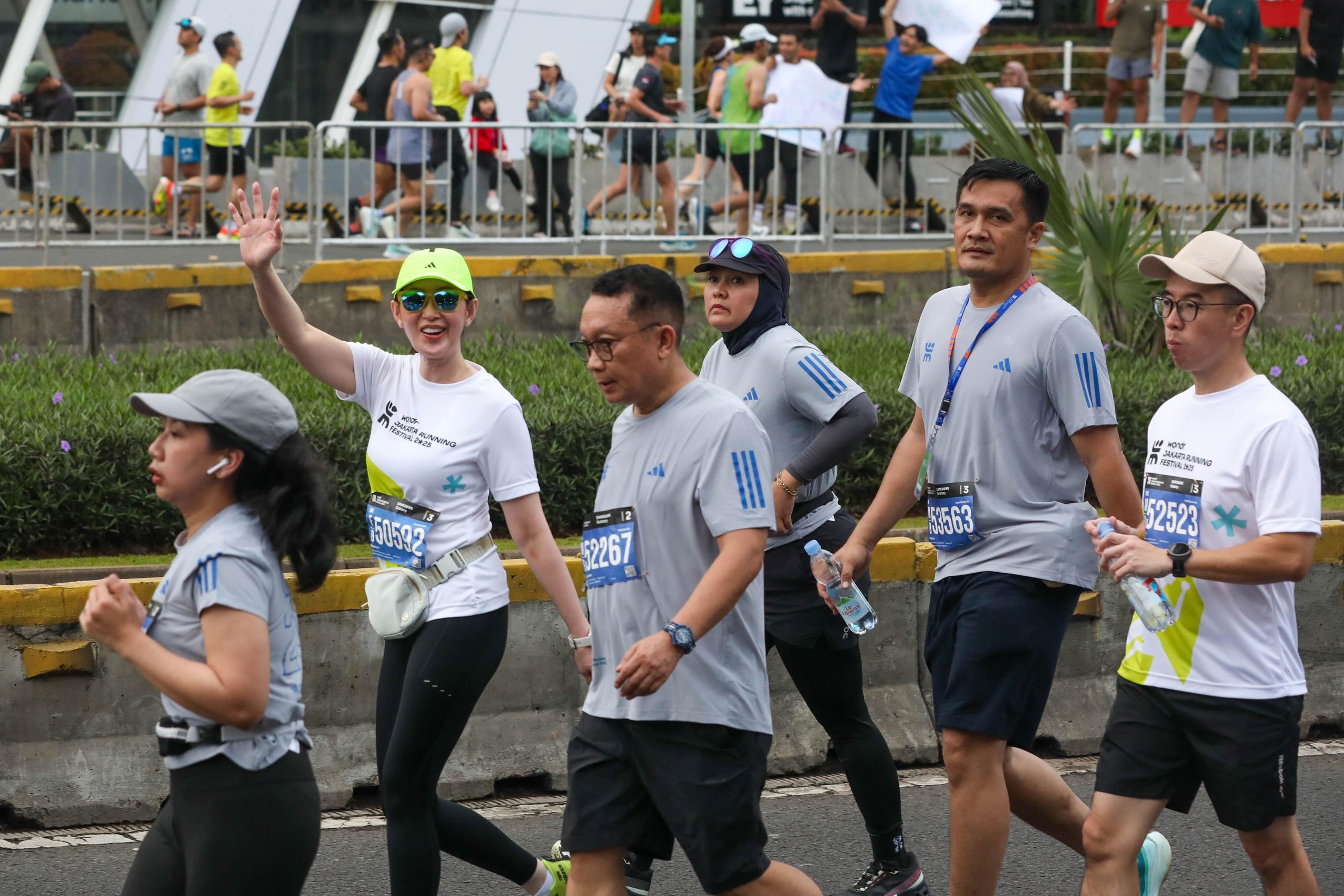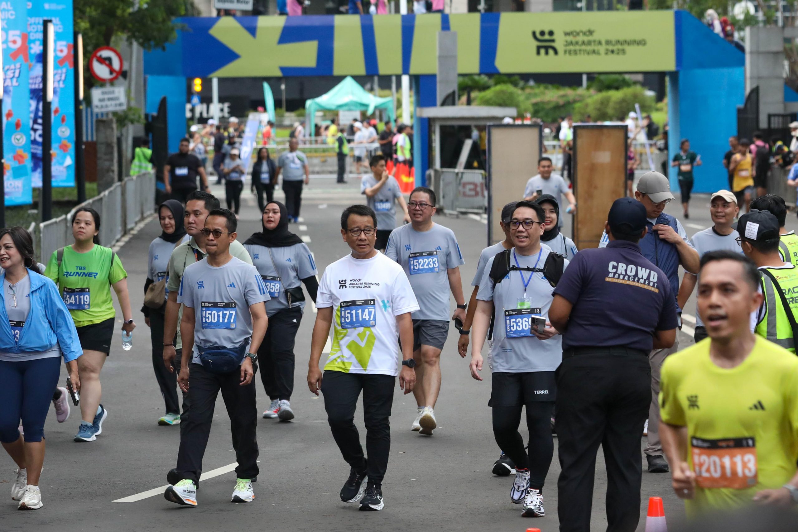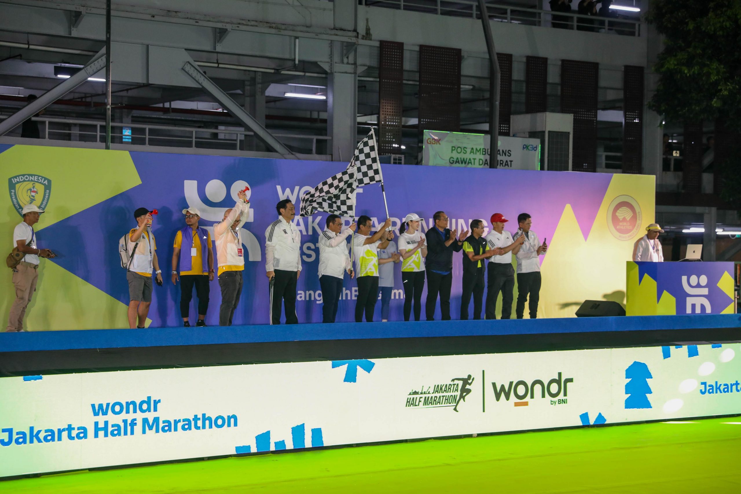 Ki-ka:Ketua Pengurus Besar Persatuan Atletik Seluruh Indonesia (PASI) Luhut Binsar Pandjaitan, Gubernur DKI Jakarta Pramono Anung, Direktur Utama BNI Putrama Wahju Setyawan, Komisaris BNI Vera Febyanthy, Wakil Direktur Utama BNI Alexandra Askandar saat membuka wondr JRF 2025 di Jakarta, Sabtu, (24/10). PT Bank Negara Indonesia (Persero) Tbk atau BNI bersama PT Kelompok Lari Anak Bangsa (KLAB) resmi membuka ajang lari internasional wondr Jakarta Running Festival (JRF) 2025 di kawasan Gelora Bung Karno Sport Complex, Jakarta.