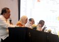 Dari kiri ke kanan: Direktur Utama Bursa Efek Indonesia Iman Rachman, Deputi Komisioner Pengawas Pasar Modal I Otoritas Jasa Keuangan Djustini Septiana, Direktur Utama Kliring Penjaminan Efek Indonesia Iding Pardi dan Direktur Utama Kustodian Sentral Efek Indonesia Uriep Budhi Prasetyo saat memberikan keterangan pada acara Workshop Media Gathering pasar modal 2022 yang bertemakan menuju ekonomi, tangguh, stabil dan berkelanjutan di Bandung(25/11/2022).