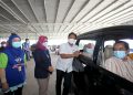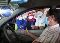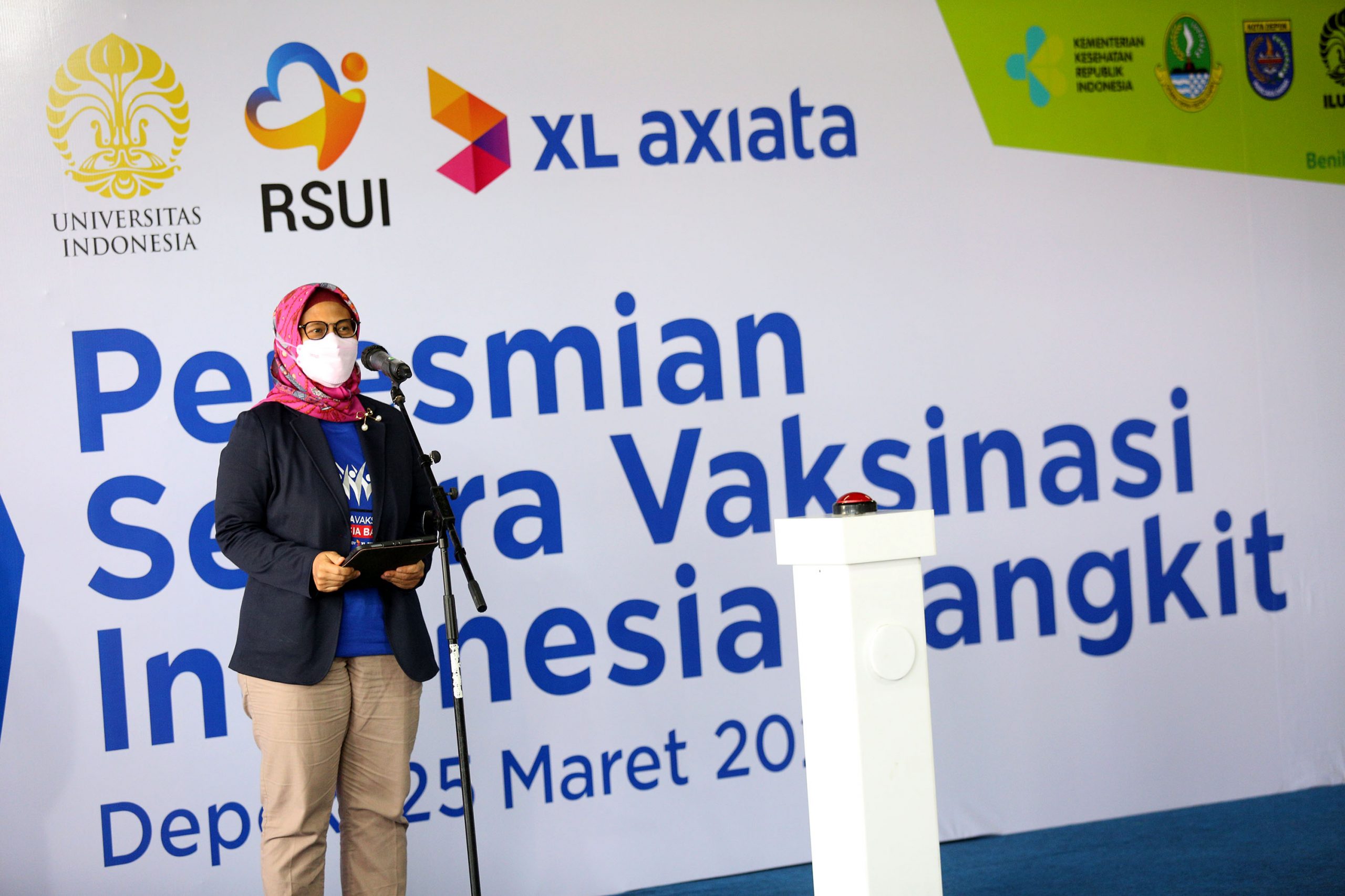 Menteri Kesehatan Budi Gunadi Sadikin (kedua kanan) bersama Presiden Direktur CEO XL Axiata Dian Siswarini (kedua kiri), Direktur Utama RSUI Astuti Giantini (kiri) menyapa warga setelah vaksinasi saat Peresmian Sentra Vaksinasi Indonesia Bangkit di RSUI, Depok, Jawa Barat, Kamis (25/3/2021). XL Axiata bekerja sama dengan Rumah Sakit Universitas Indonesia yang didukung penuh oleh Kementerian Kesehatan dan Pemerintah Kota Depok menggelar program Sentra Vaksinasi Indonesia Bangkit untuk lansia yang berdomisili Depok dan sekitarnya secara drive thru.